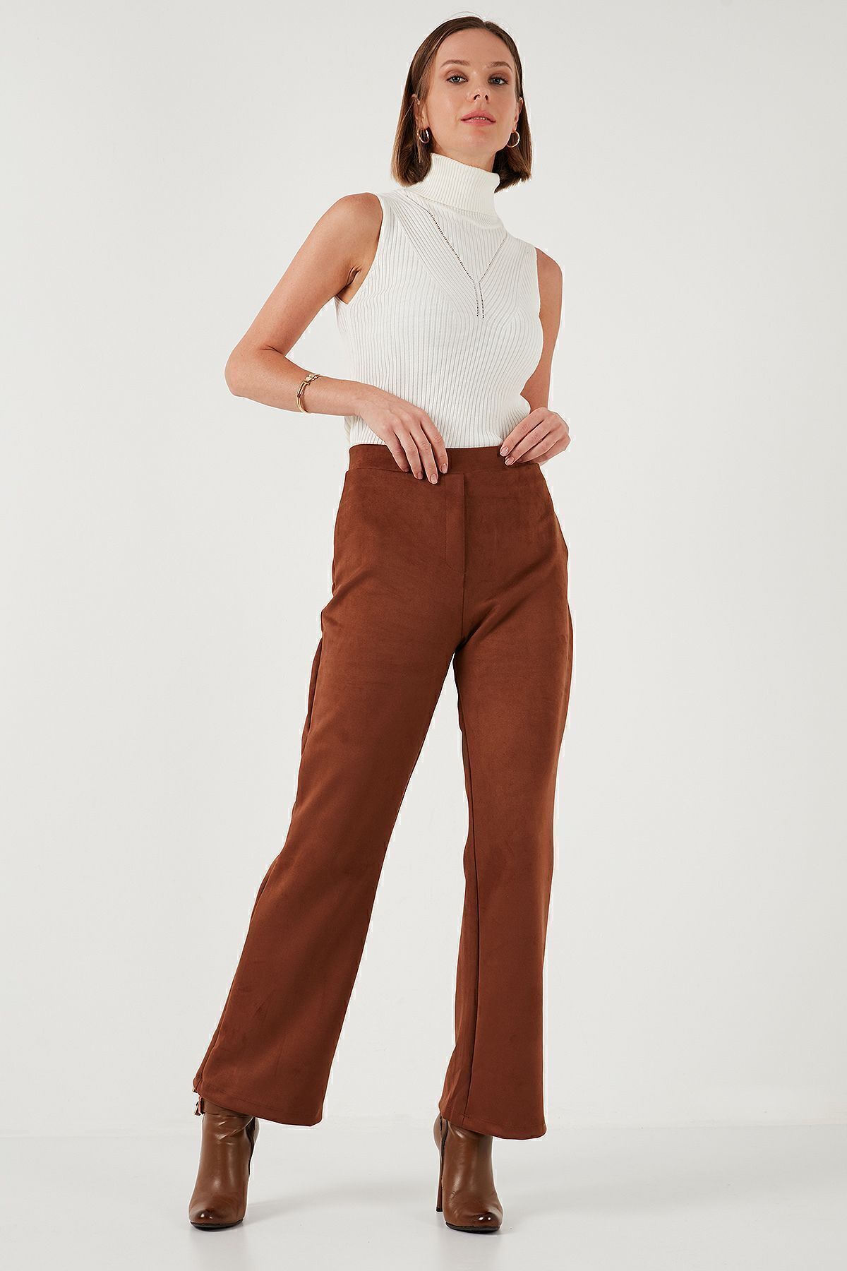 Kadın Bel Lastikli Yandan Fermuar Kapamalı Süet İspanyol Pantolon Kadın Bel Lastikli Yandan Fermuar Kapamalı Süet İspanyol Pantolon MDTRN31427 XL