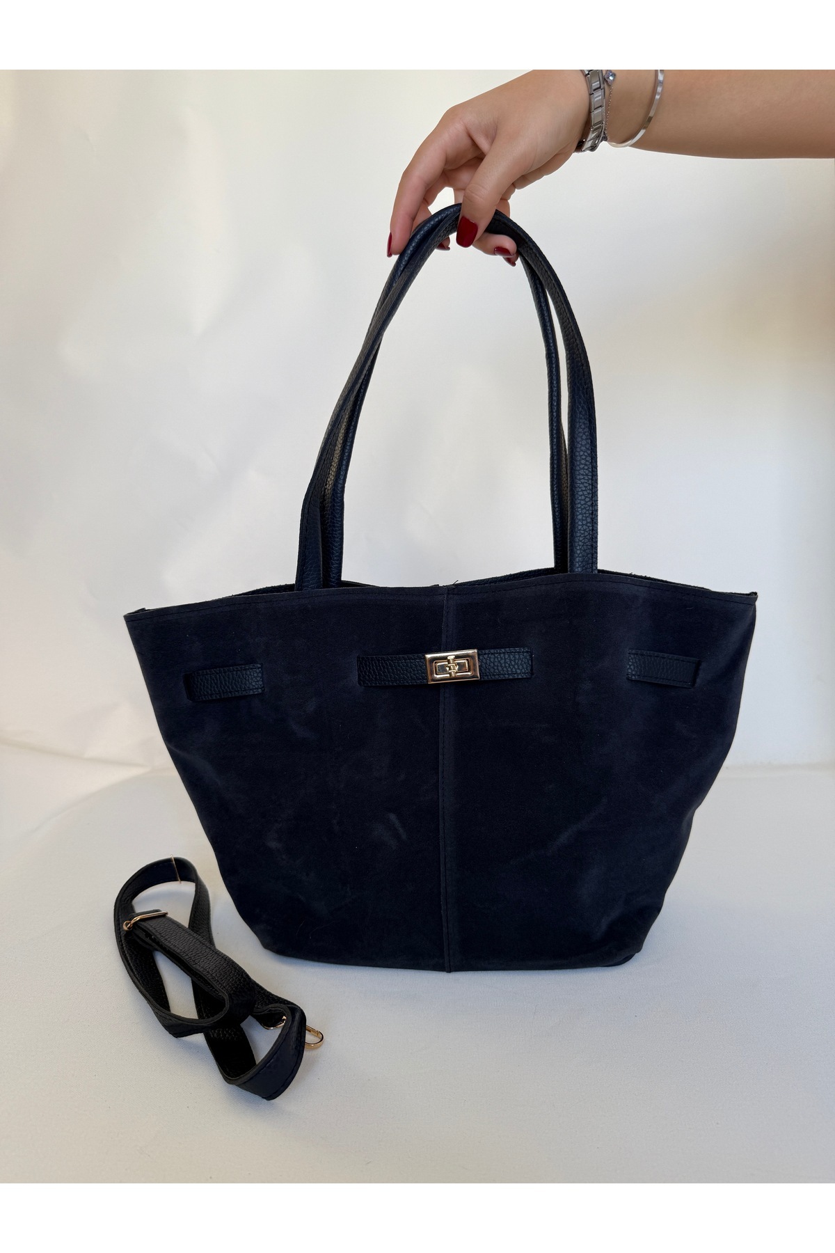 Kadın Lacivert Süet Deri Mıknatıs Kapamalı Kilit Detaylı El ve Omuz Çantası büyük geniş çanta Kadın Lacivert Süet Deri Mıknatıs Kapamalı Kilit Detaylı El ve Omuz Çantası büyük geniş çanta mlk9837498798374 Standart