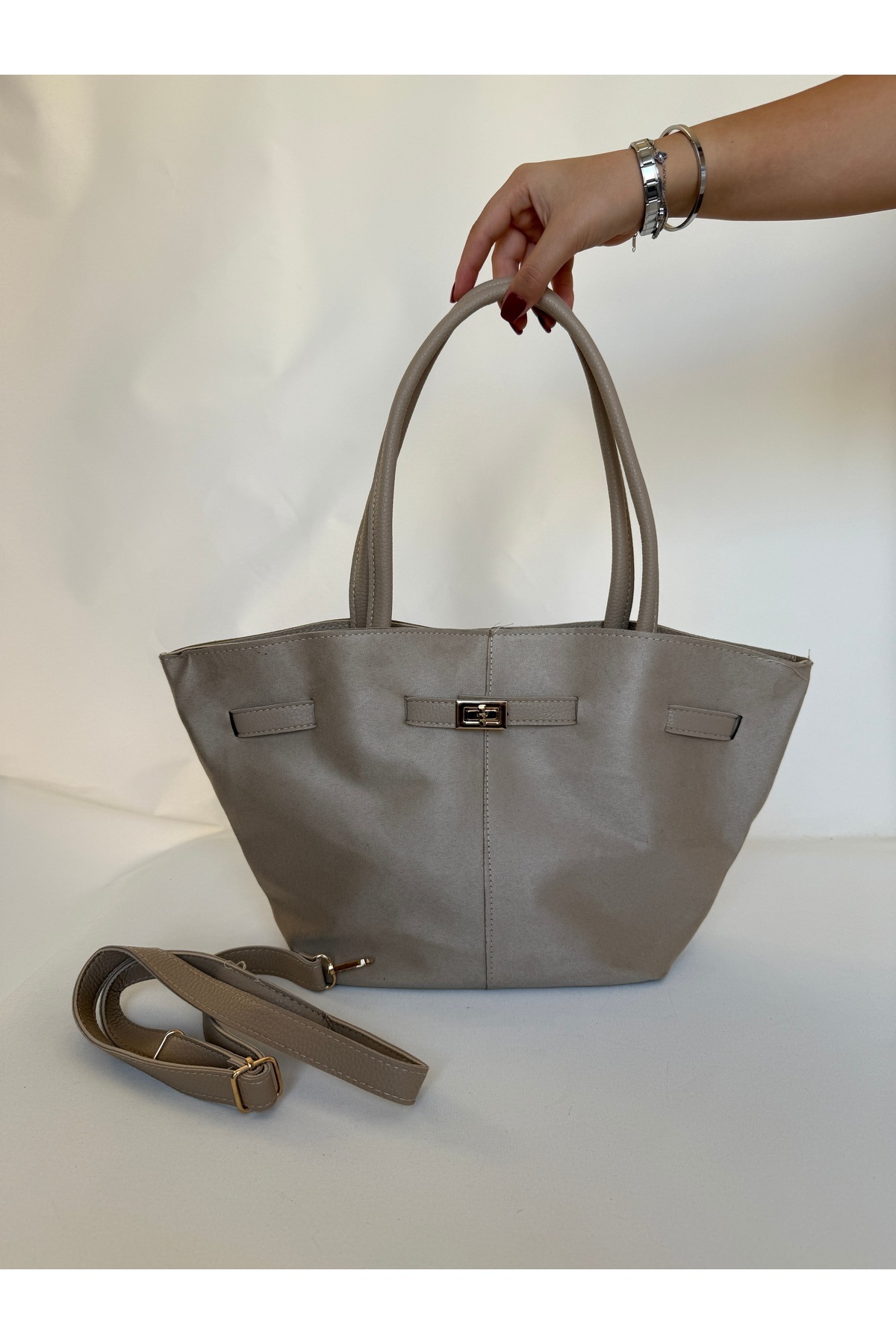 Kadın Bej Süet Deri Mıknatıs Kapamalı Kilit Detaylı El ve Omuz Çantası büyük geniş çanta Kadın Bej Süet Deri Mıknatıs Kapamalı Kilit Detaylı El ve Omuz Çantası büyük geniş çanta mlk9837498798374 Standart