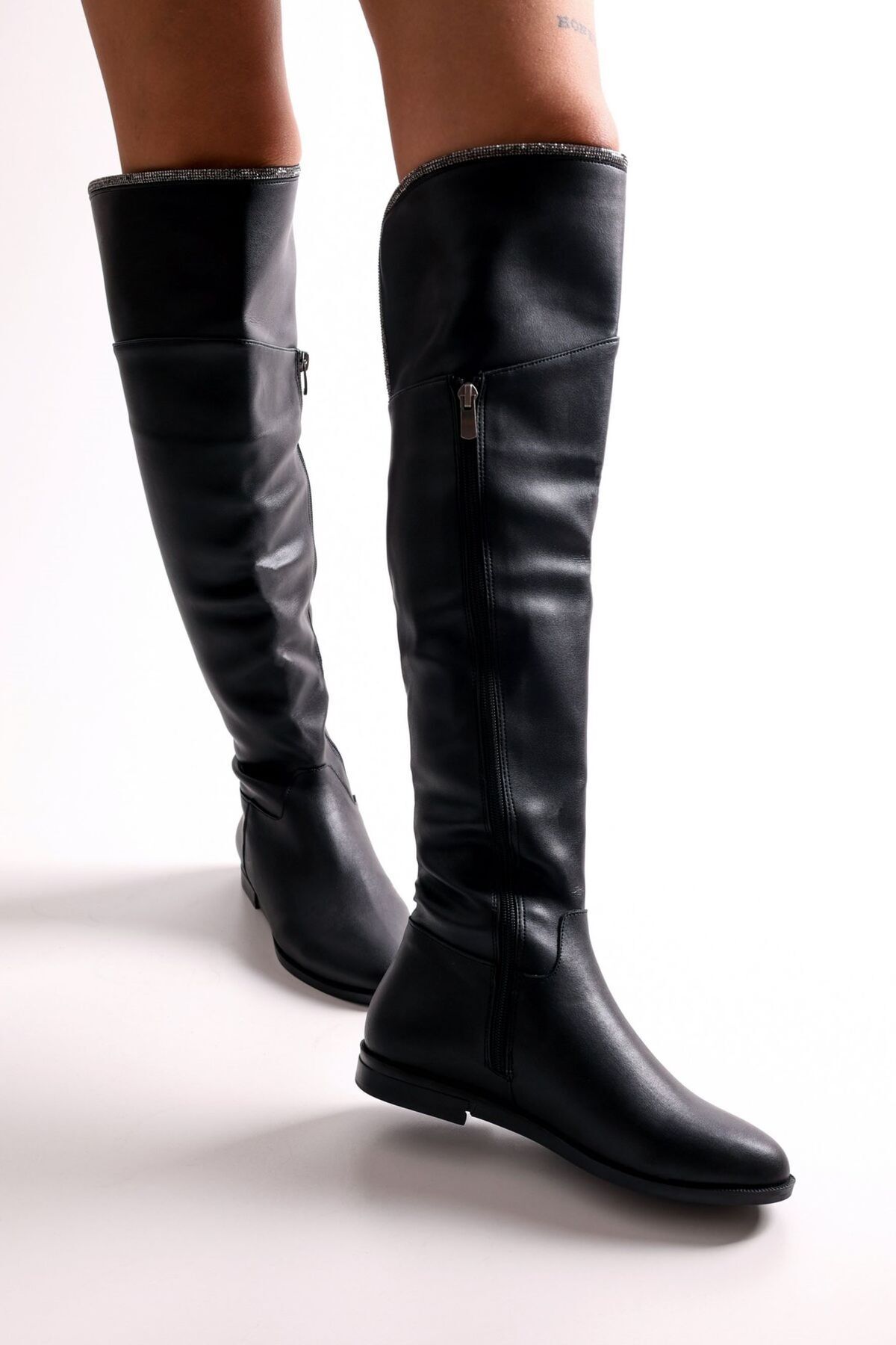 Sayer Yaka Taşlı Kadın Topuklu Çizme Siyah Cilt Sayer Yaka Taşlı Kadın Topuklu Çizme Siyah Cilt 129 24K2435 40
