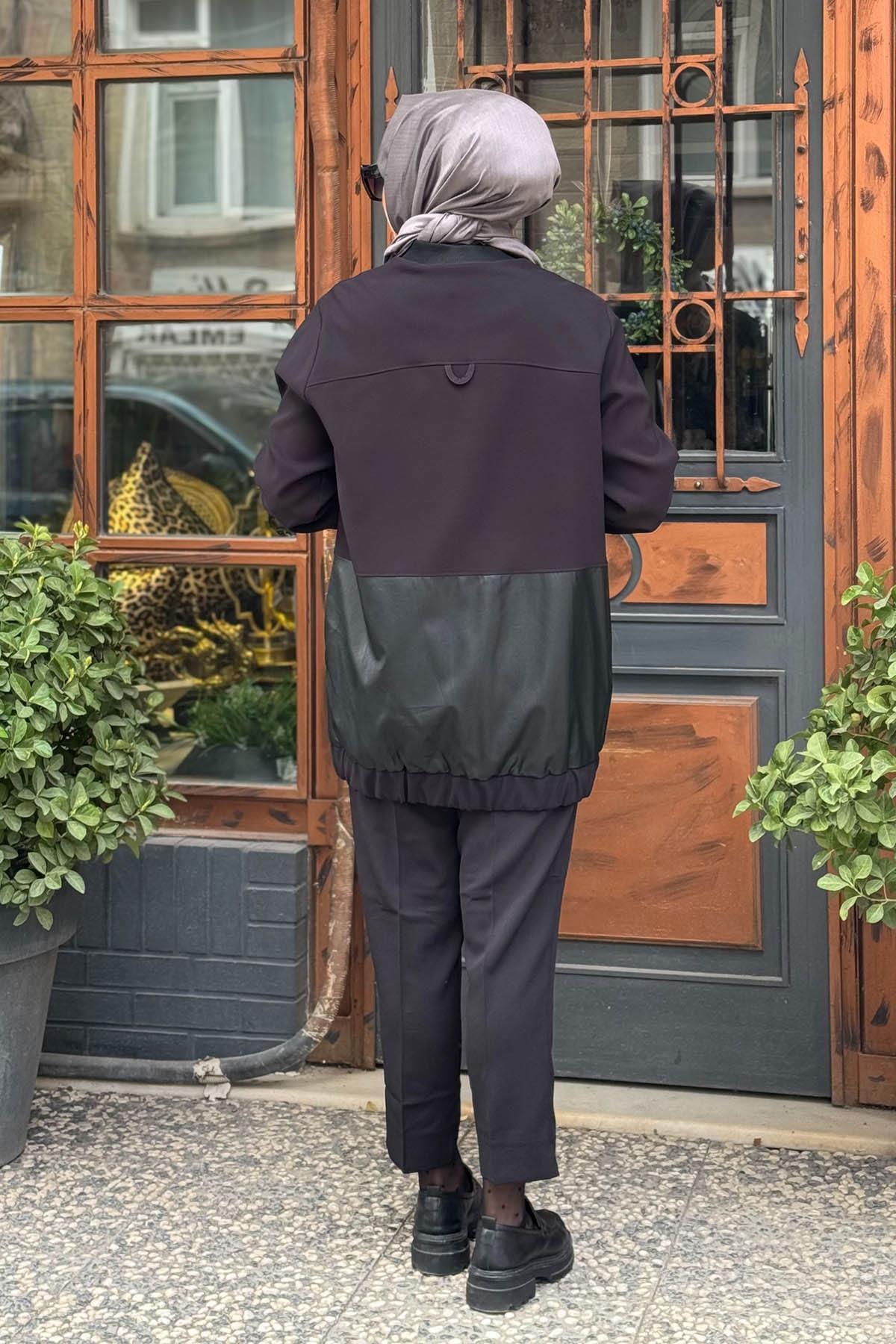 Çiçek Aplikeli Suni Deri Garnili Ceket Siyah Çiçek Aplikeli Suni Deri Garnili Ceket Siyah KA-A24-13082 42