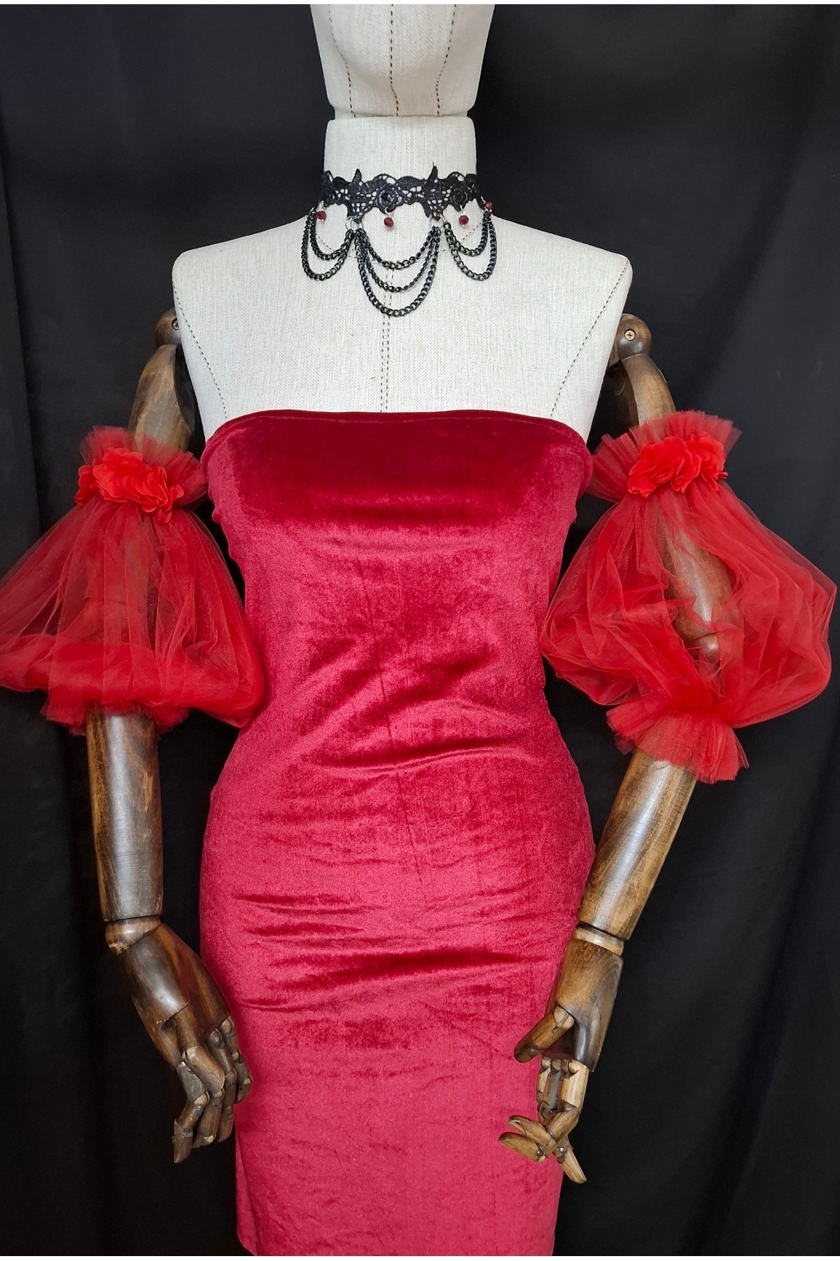 Mariam Kuş Gözü Detaylı Şifon Kolluk kırmızı Mariam Kuş Gözü Detaylı Şifon Kolluk kırmızı 00331 تک سایز