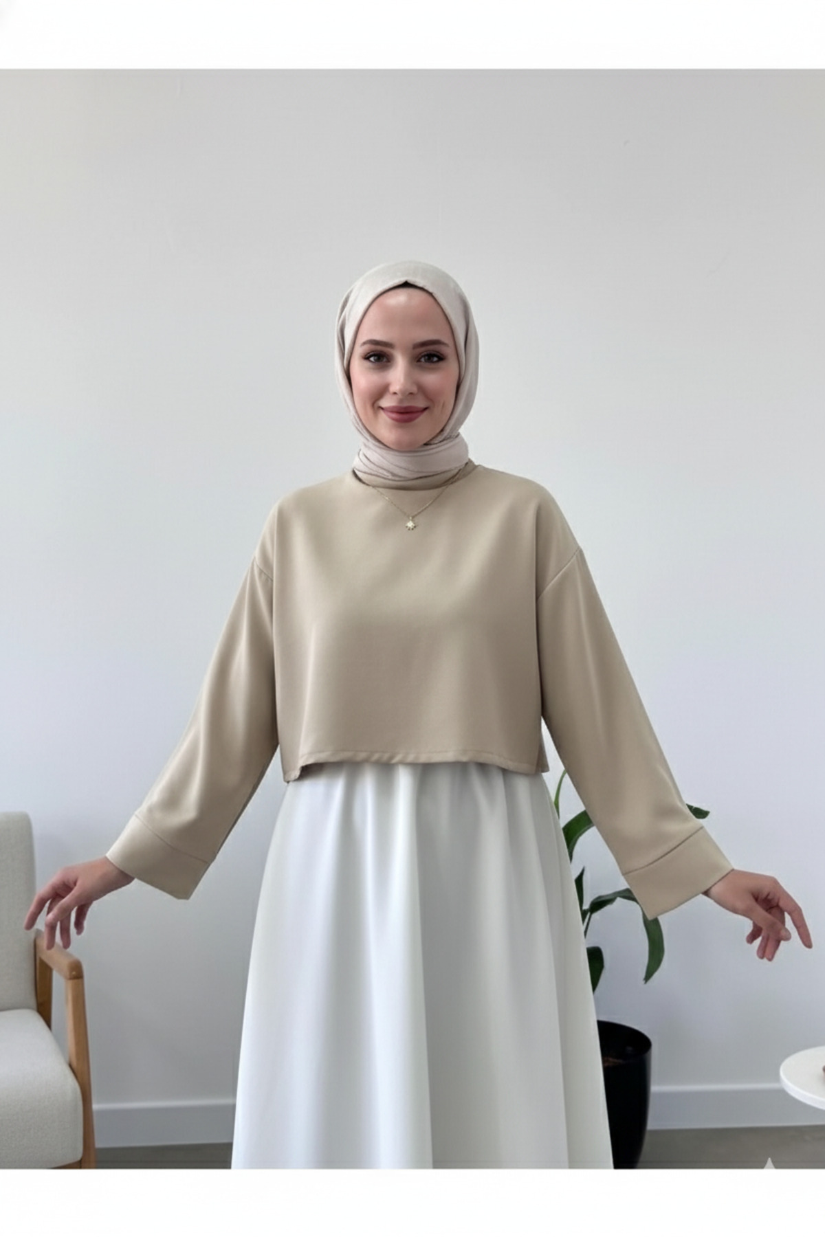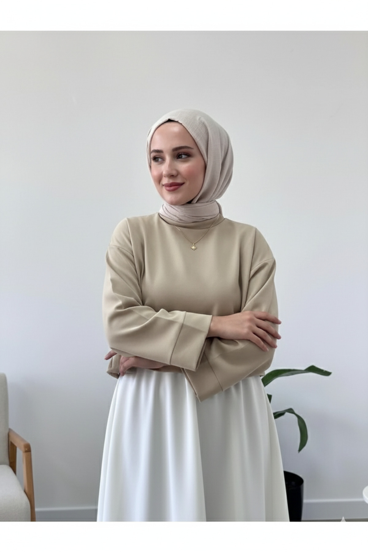 KISA KREP BLUZ -BEJ - GENİŞ BEDEN ARALIĞI KISA KREP BLUZ -BEJ - GENİŞ BEDEN ARALIĞI H1034 36-38