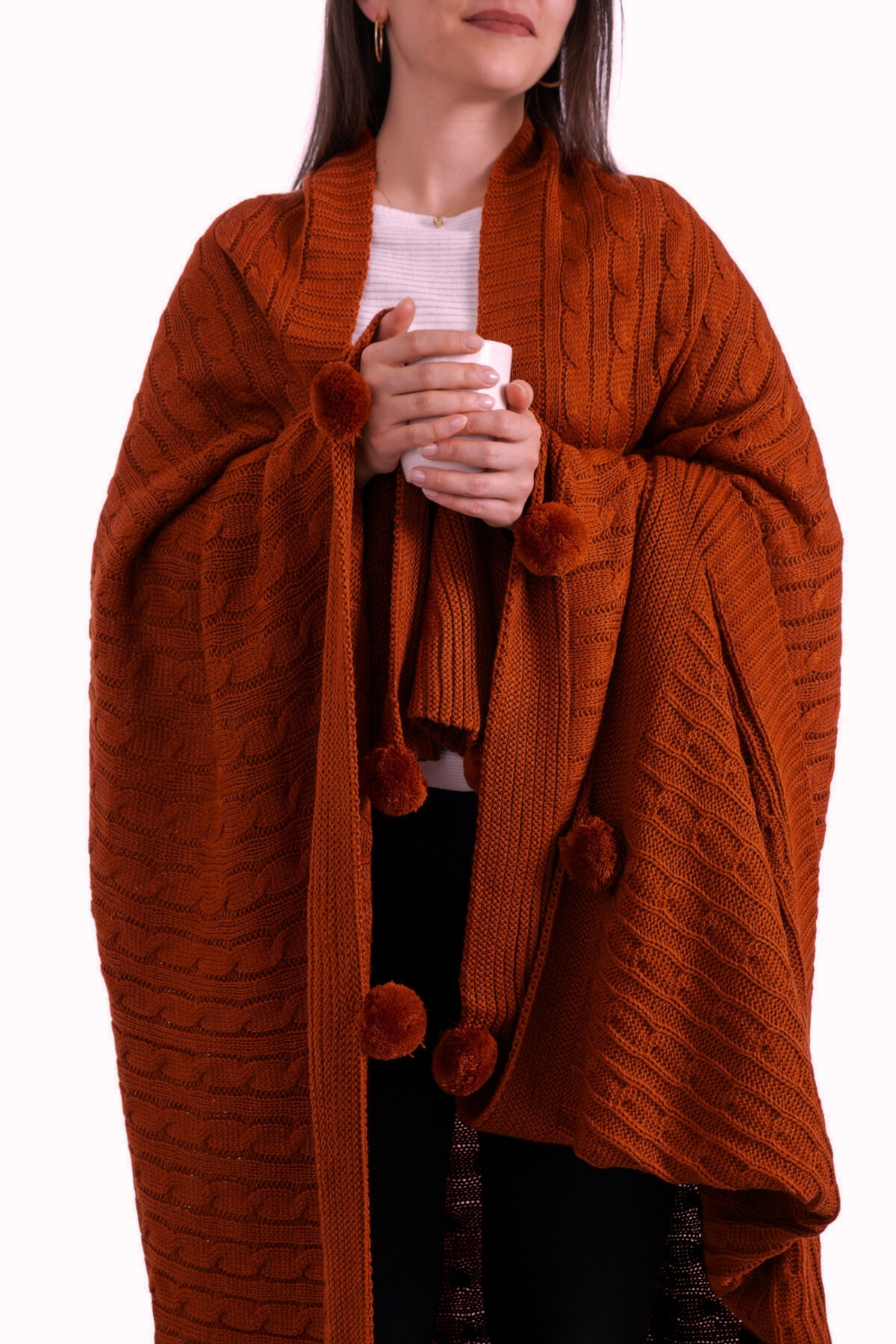 Ponponlu Triko Örme Tv Battaniyesi – Koltuk & Omuz Şalı & Diz Battaniyesi –130x170 cm-Kiremit-Terra Ponponlu Triko Örme Tv Battaniyesi – Koltuk & Omuz Şalı & Diz Battaniyesi –130x170 cm-Kiremit-Terra 56-2501 130 x 170