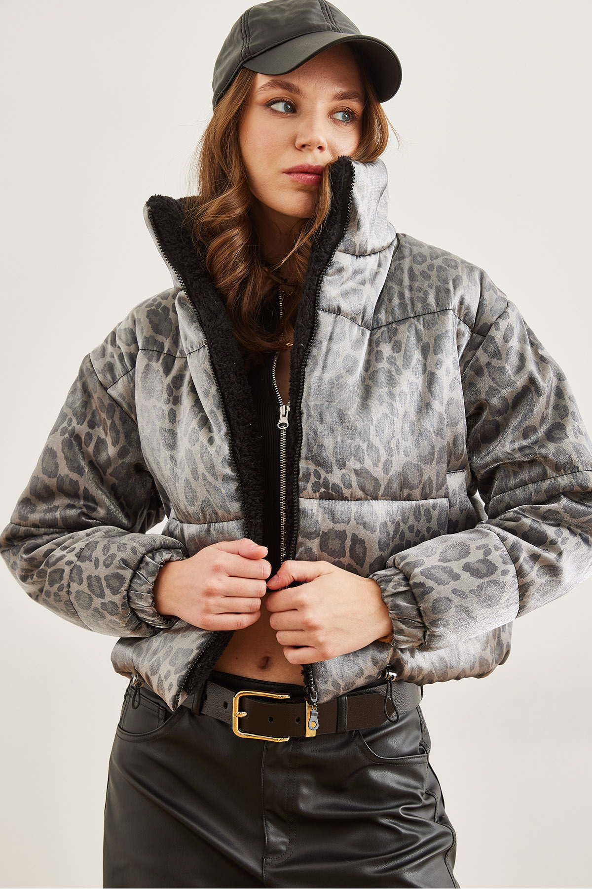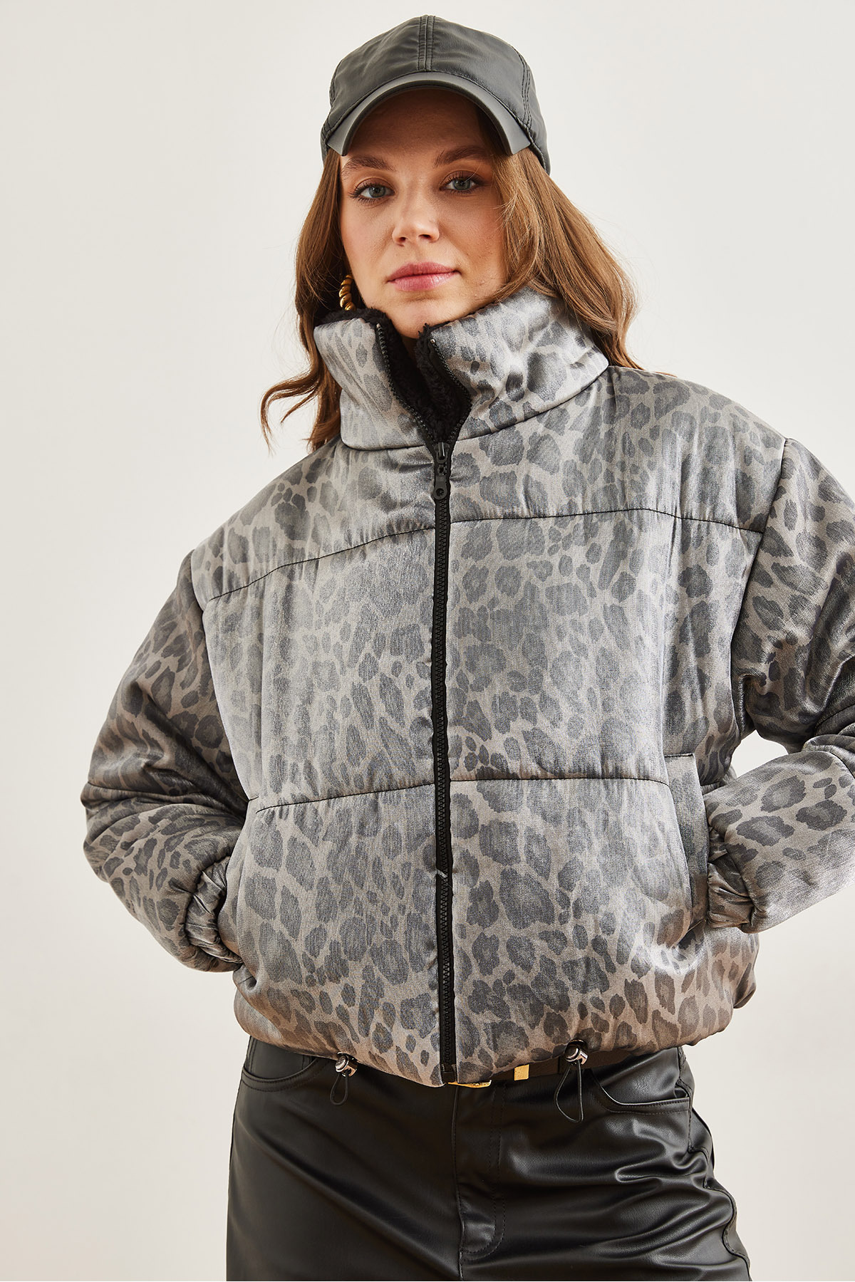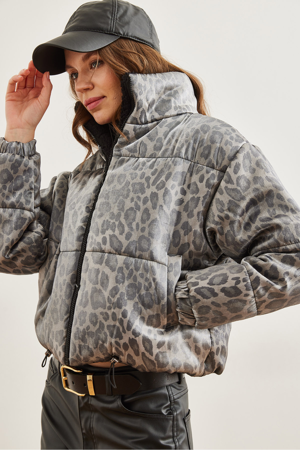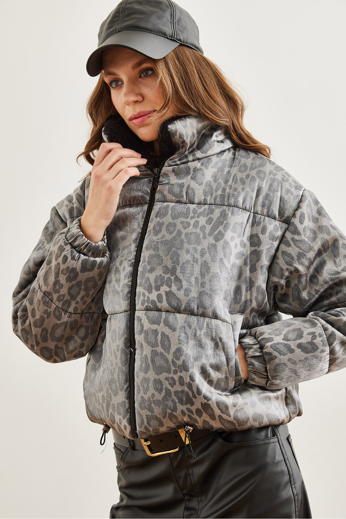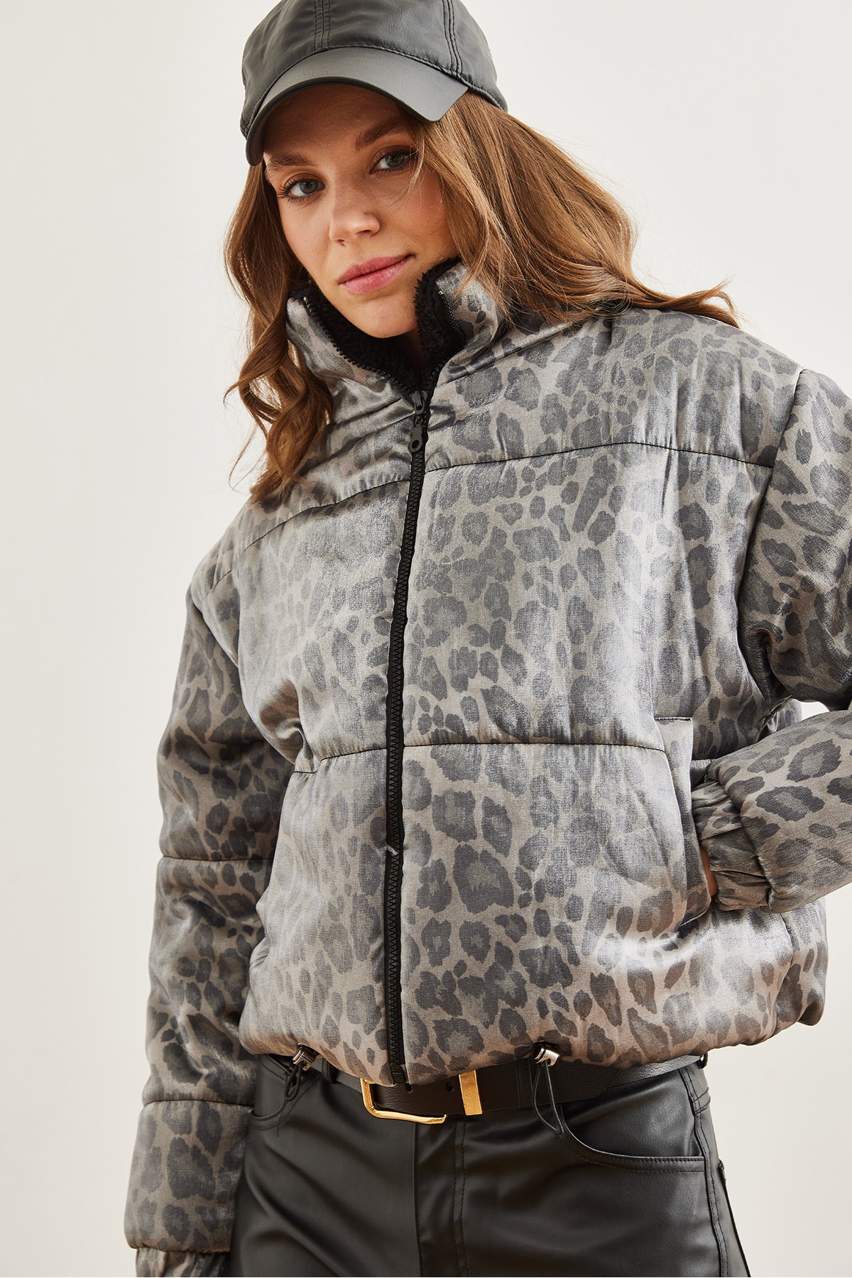 Kadın Gri Leopar Desenli Cepli Parlak Şişme Mont MNT-19000046 Kadın Gri Leopar Desenli Cepli Parlak Şişme Mont MNT-19000046 XL