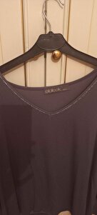 Kadın Koyu Gri Gümüş Dikiş Detaylı V Yaka Viskon Bluz BLZ-19002747 Kadın Koyu Gri Gümüş Dikiş Detaylı V Yaka Viskon Bluz BLZ-19002747 XL