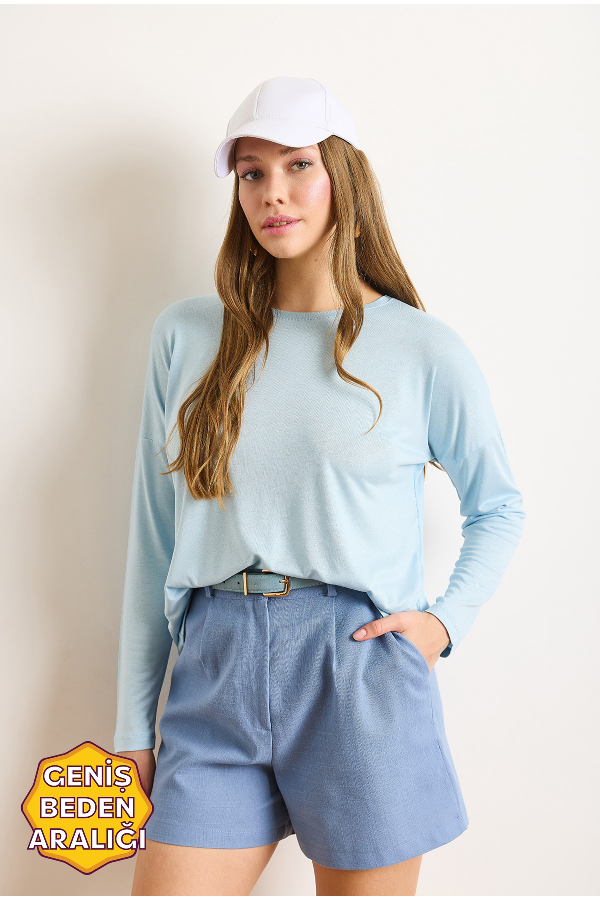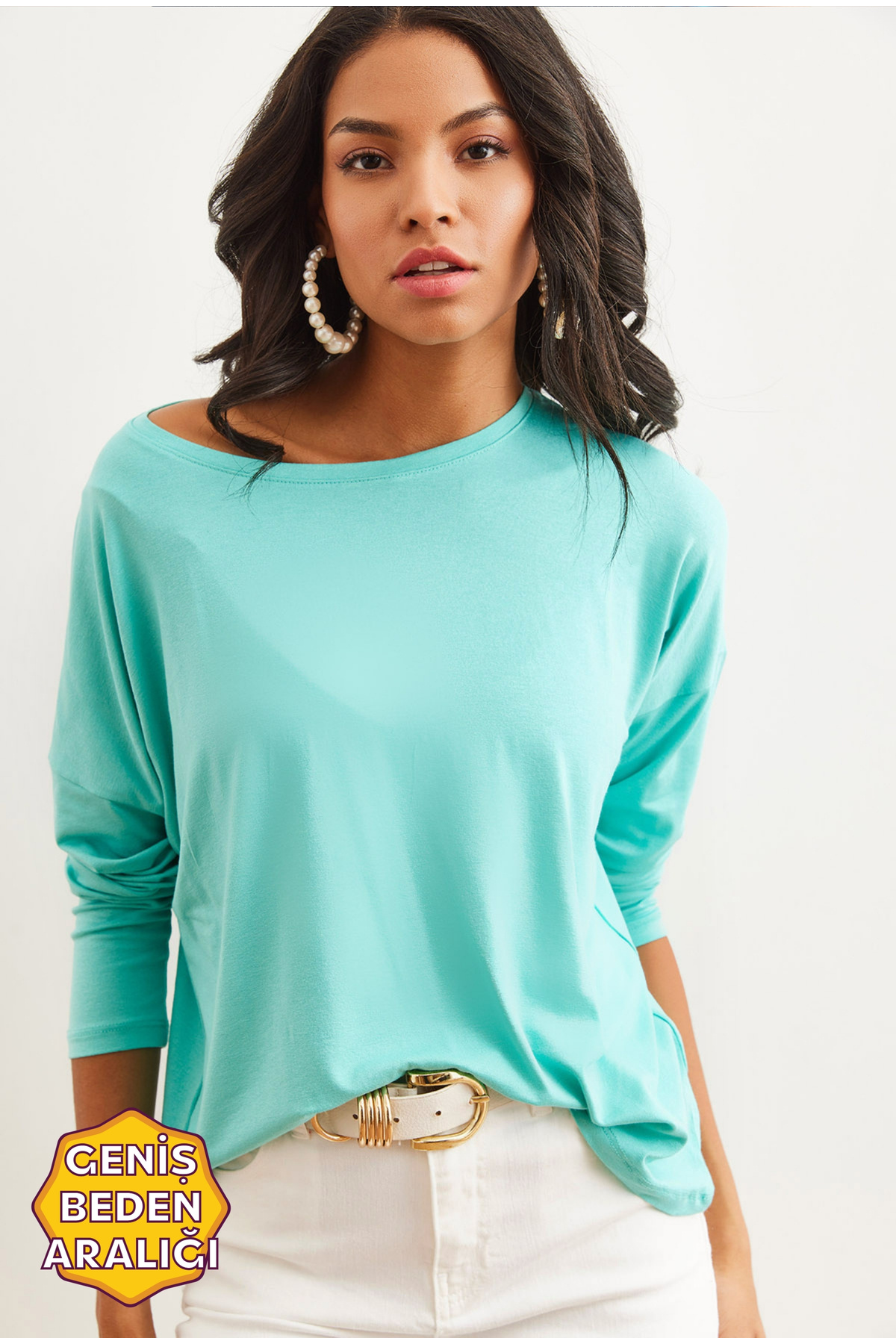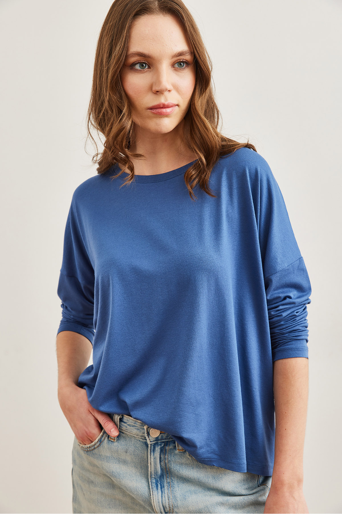 Kadın İndigo Bisiklet Yaka Yarasa Dökümlü Viskon Bluz BLZ-19002588 Kadın İndigo Bisiklet Yaka Yarasa Dökümlü Viskon Bluz BLZ-19002588 6XL