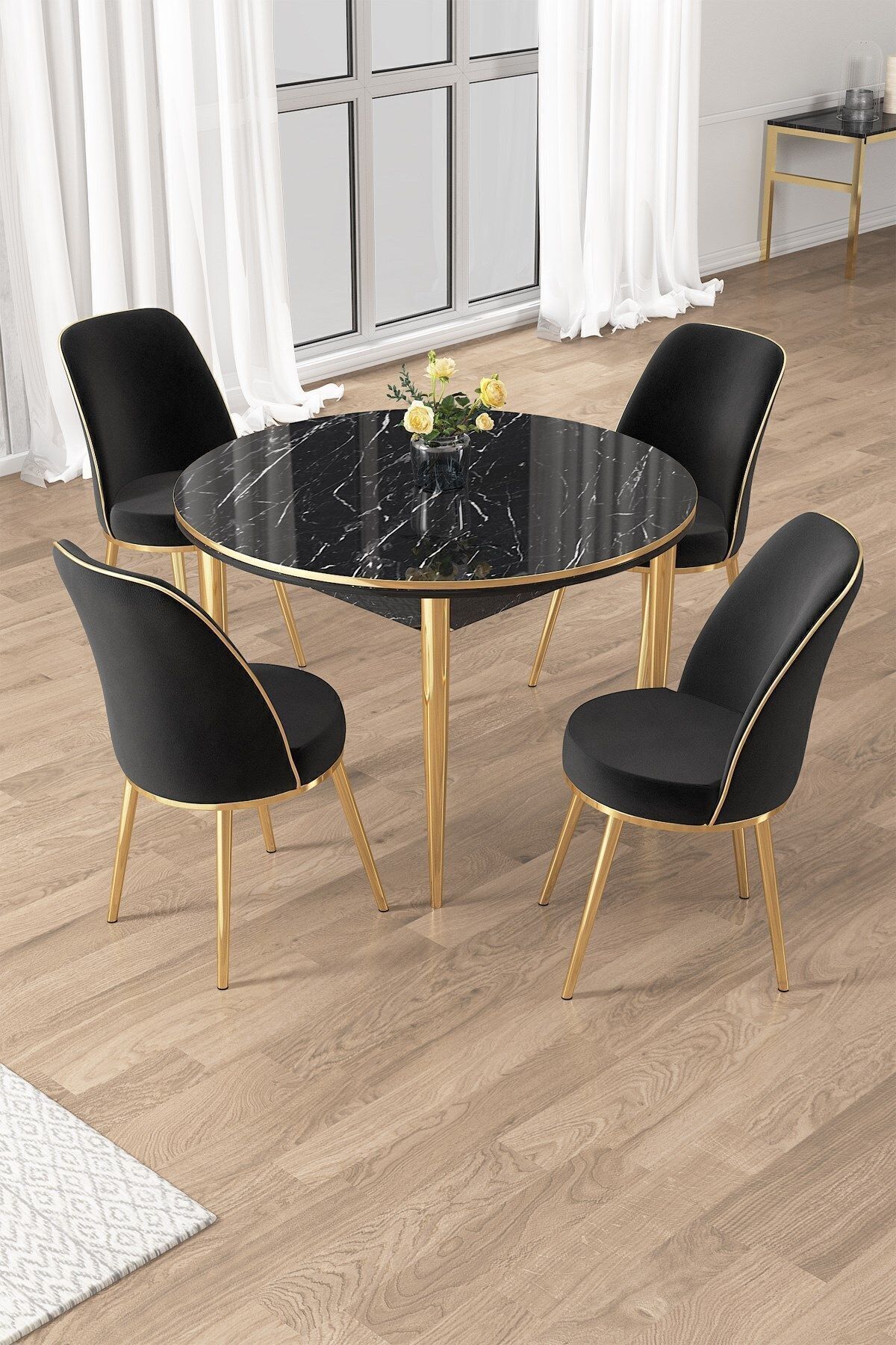 Rewa Serisi 70x110 Sabit Siyah Mermer Desen Gold Detay Masa Takımı ve 4 Krem Sandalye Rewa Serisi 70x110 Sabit Siyah Mermer Desen Gold Detay Masa Takımı ve 4 Krem Sandalye 22REWA04SMRGLD تک سایز