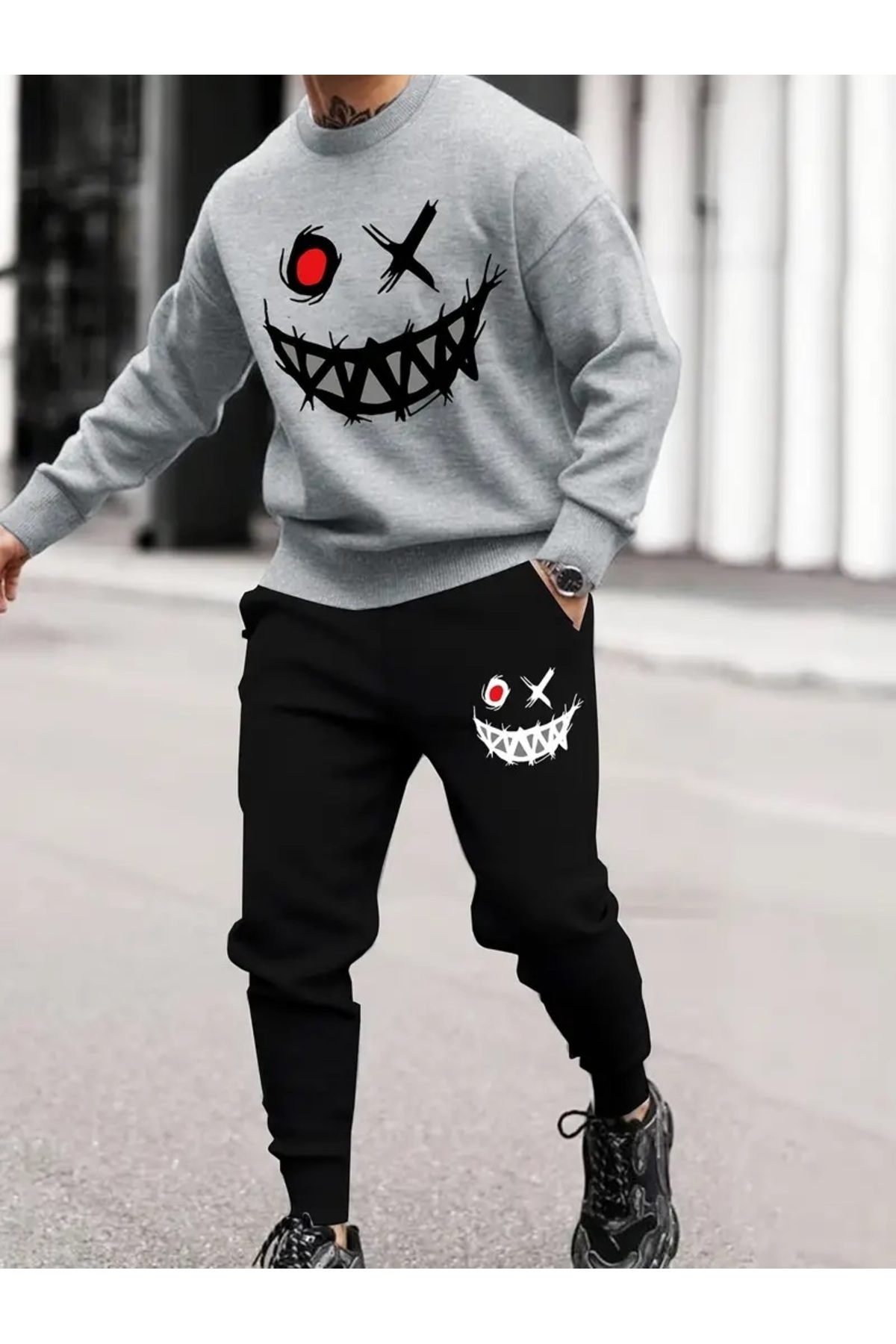 Eşofman Takımı Gülen yüz baskılı Unisex kışlık Kalın pamuklu Sweatshirt ve Eşofman altı 2' li set Eşofman Takımı Gülen yüz baskılı Unisex kışlık Kalın pamuklu Sweatshirt ve Eşofman altı 2' li set GLNYUZKŞLKTAKMSİY XL