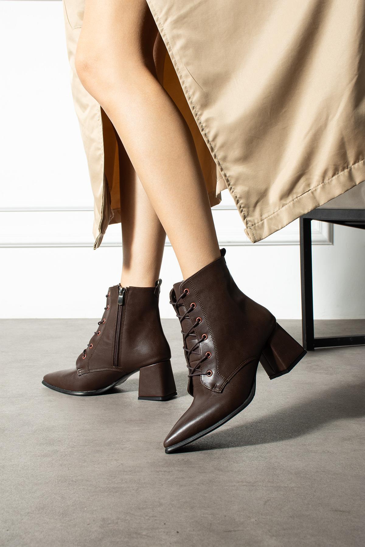 Malirsa Kadın Bot Bağcıklı Kalın Topuklu Kahve Deri Malirsa Kadın Bot Bağcıklı Kalın Topuklu Kahve Deri 40