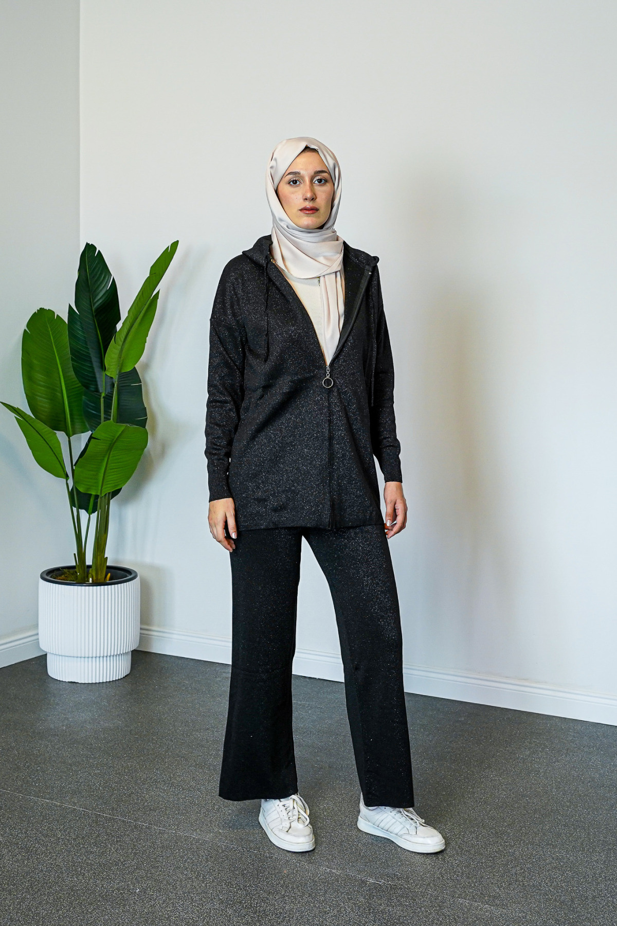Kadın Simli Merserize Triko Pantolonlu Hırka Takım Kadın Simli Merserize Triko Pantolonlu Hırka Takım 2609070824 تک سایز
