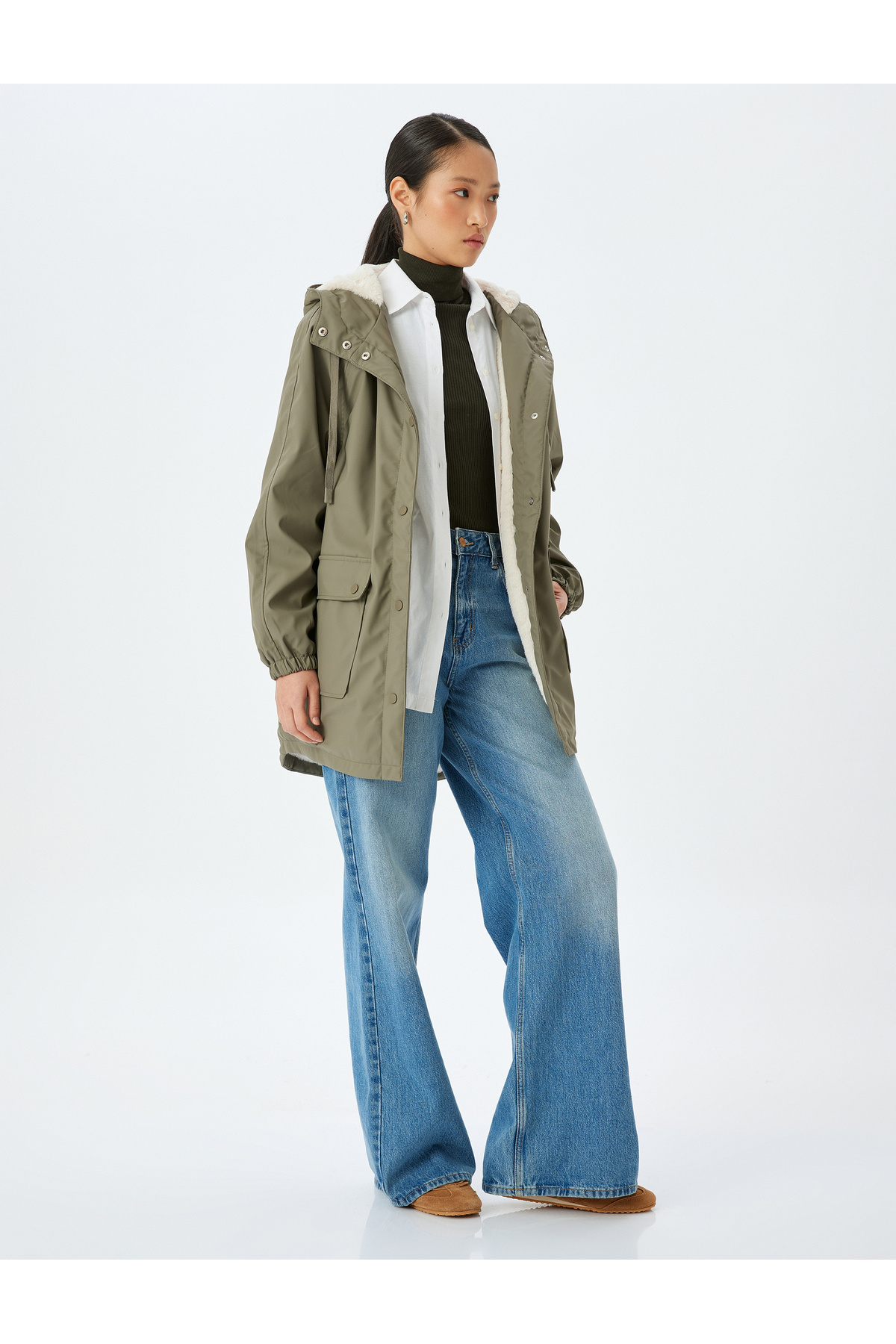 Kapüşonlu Fermuarlı Cepli İçi Suni Kürklü Parka Kapüşonlu Fermuarlı Cepli İçi Suni Kürklü Parka 5WAK00167EW 44