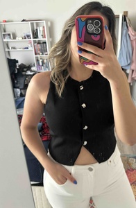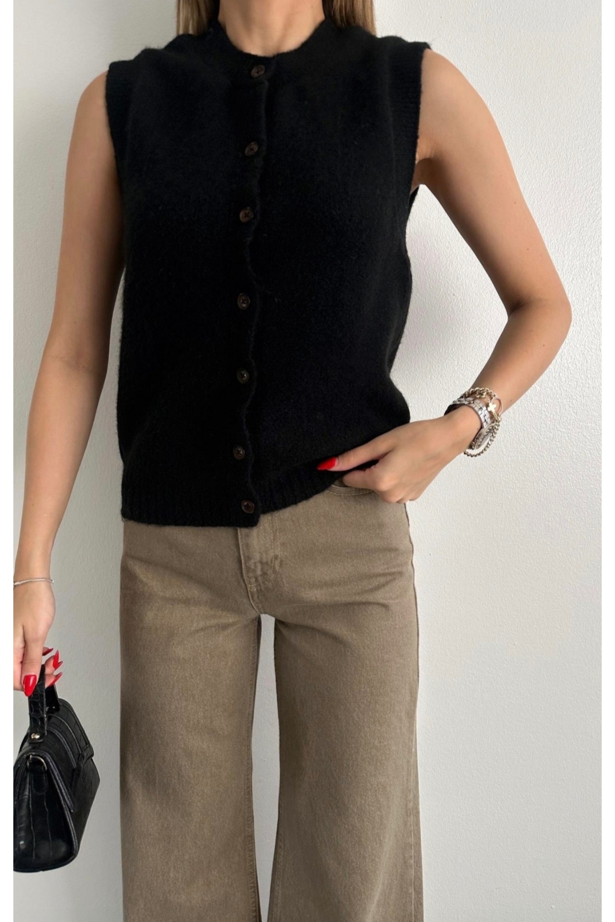 Kolsuz Düğmeli Bisiklet Yaka Triko Yelek Kolsuz Düğmeli Bisiklet Yaka Triko Yelek 5WAL20027HT L