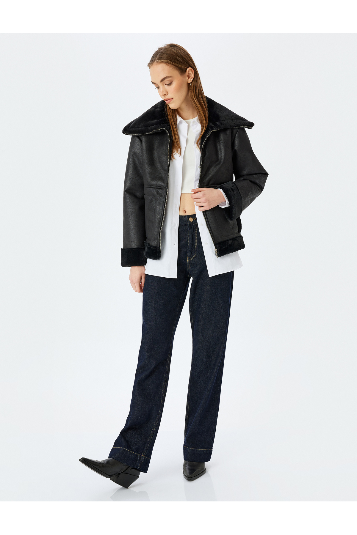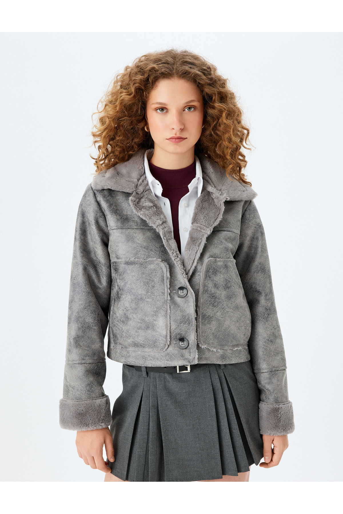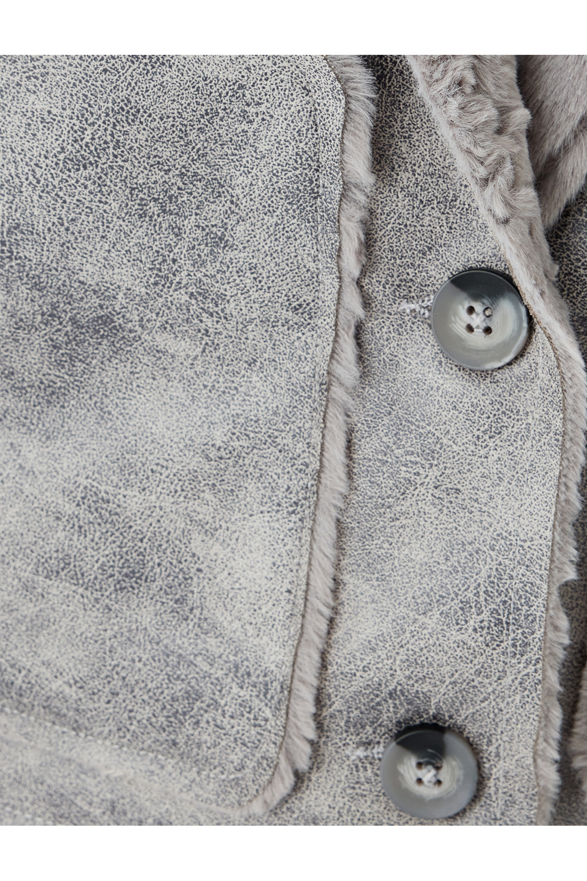 Düğmeli İçi Suni Kürklü Klasik Yaka Deri Görünümlü Ceket Düğmeli İçi Suni Kürklü Klasik Yaka Deri Görünümlü Ceket 5WAL20197IW 40