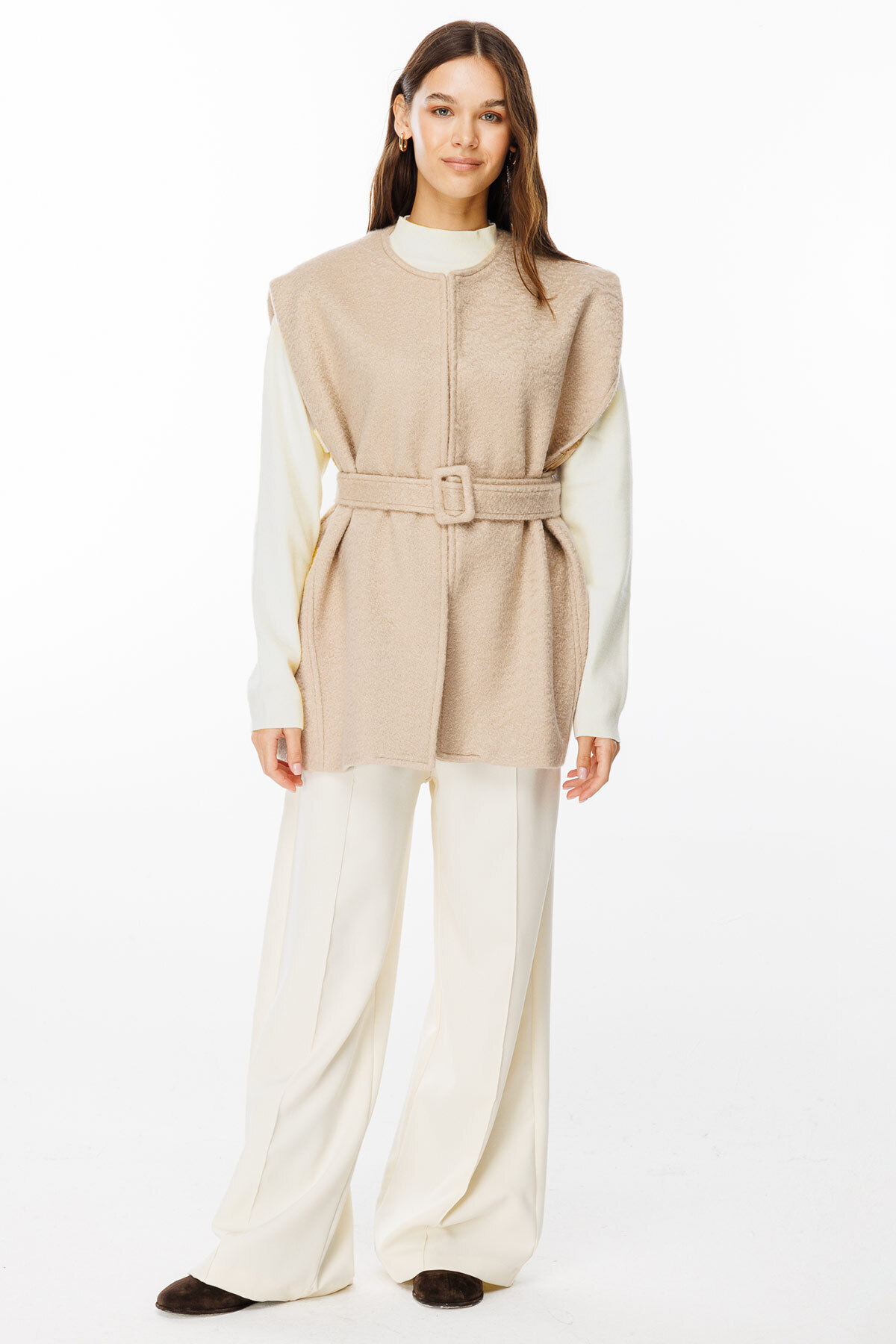 Vatkalı Geniş Kesim Taş Kaşe Yelek Vatkalı Geniş Kesim Taş Kaşe Yelek HK25100-TAŞ تک سایز