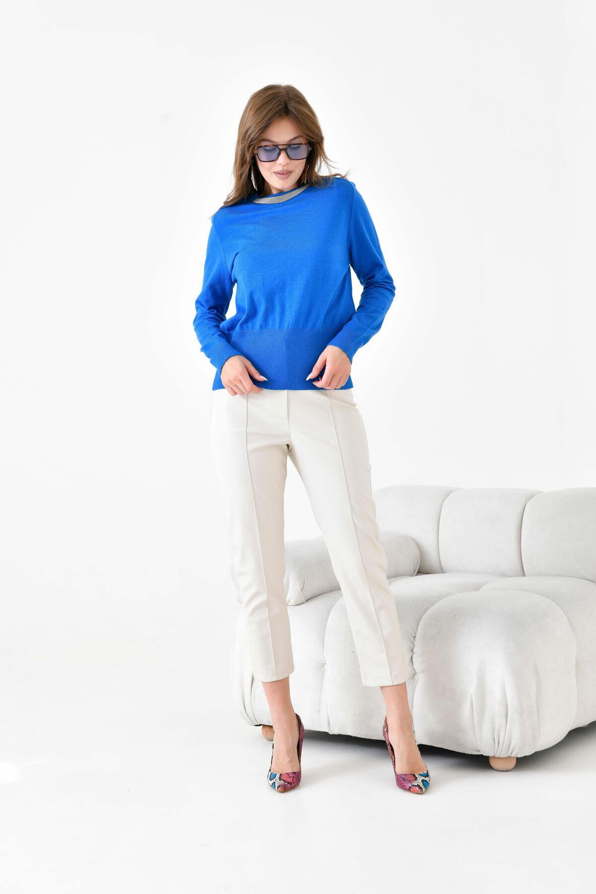 Kadın Zincir Detaylı Kazak Mavi 20823 Kadın Zincir Detaylı Kazak Mavi 20823 42-44