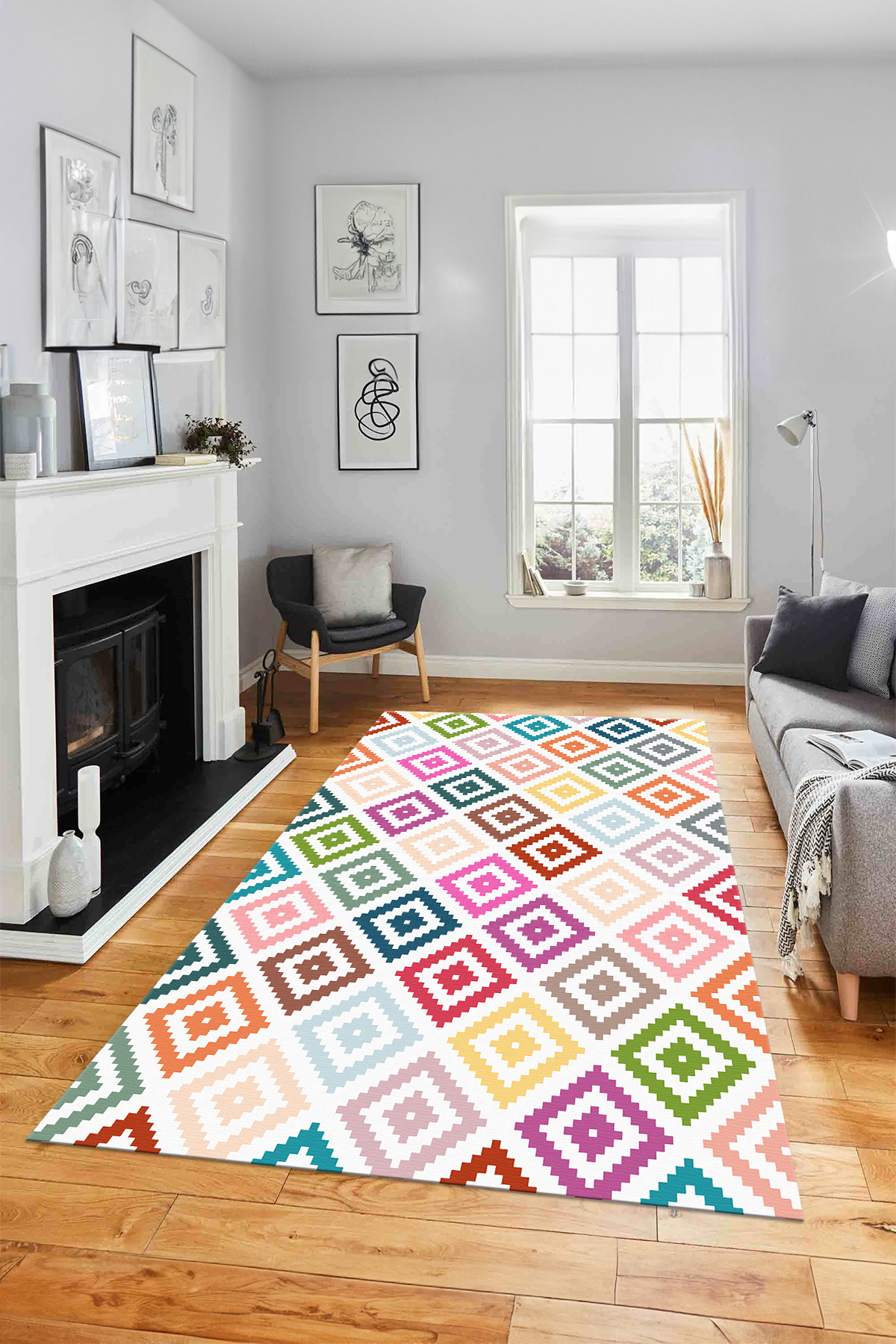 Modern Kaymaz Taban Simetrik Kare Model Yıkanabilir Yolluk Mutfak Salon Halısı Modern Kaymaz Taban Simetrik Kare Model Yıkanabilir Yolluk Mutfak Salon Halısı MODERN-231 160 x 230