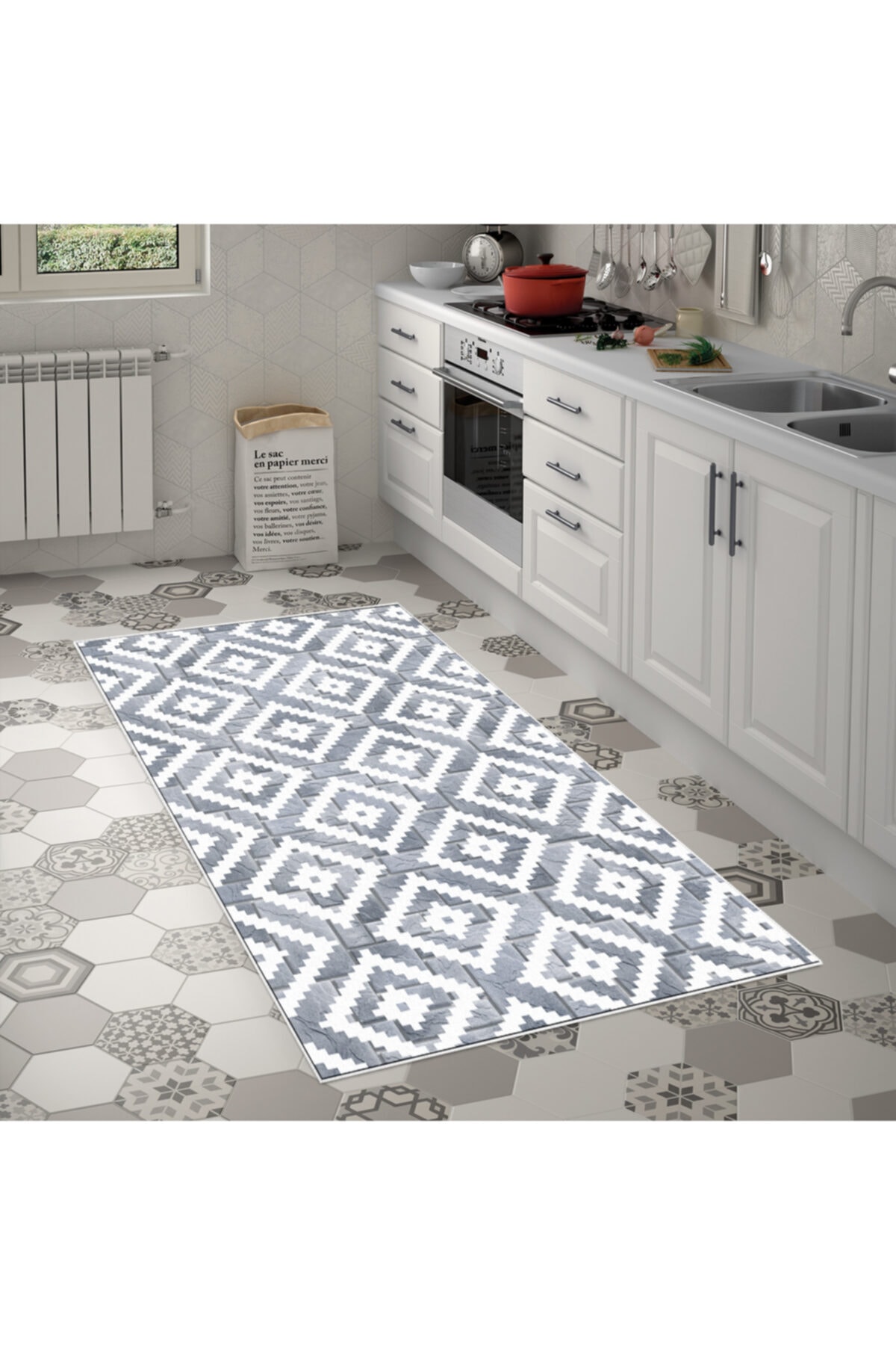 Modern Kaymaz Taban Simetrik Kare Model Yıkanabilir Yolluk Mutfak Salon Halısı Modern Kaymaz Taban Simetrik Kare Model Yıkanabilir Yolluk Mutfak Salon Halısı MODERN-231 160 x 230