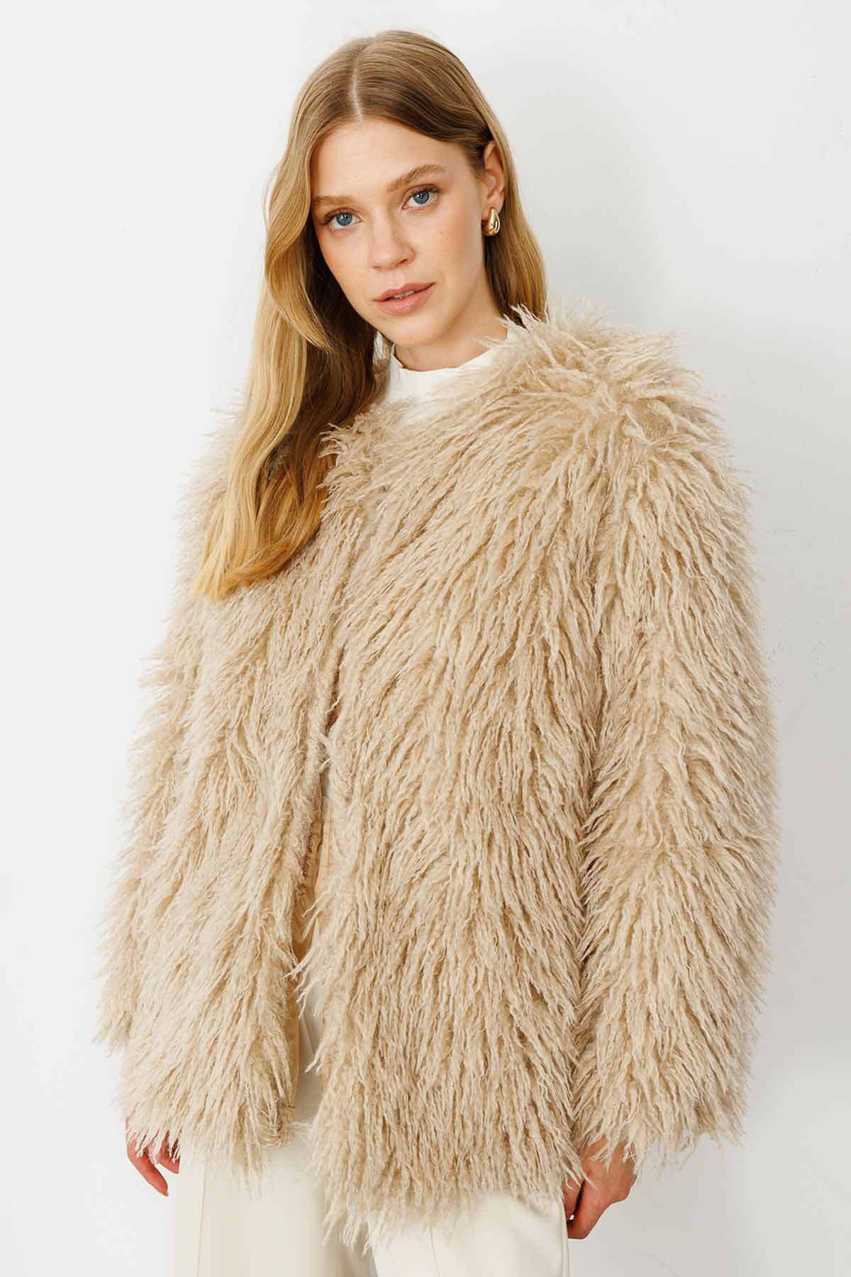 Selection Kabarık Tüylü Vizon Ceket Selection Kabarık Tüylü Vizon Ceket HK25174-VİZON Standart