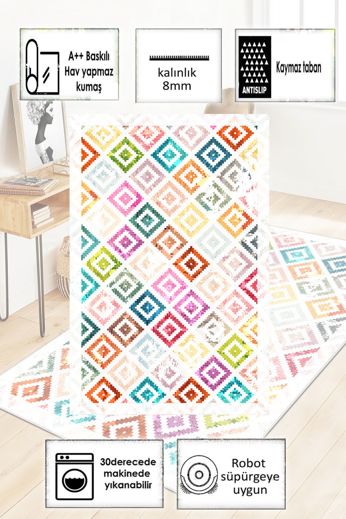 Kaymaz Tabanlı Yıkanabilir Baskılı Yolluk Halı Koridor Halısı Kaymaz Tabanlı Yıkanabilir Baskılı Yolluk Halı Koridor Halısı H-Petek 160 x 230