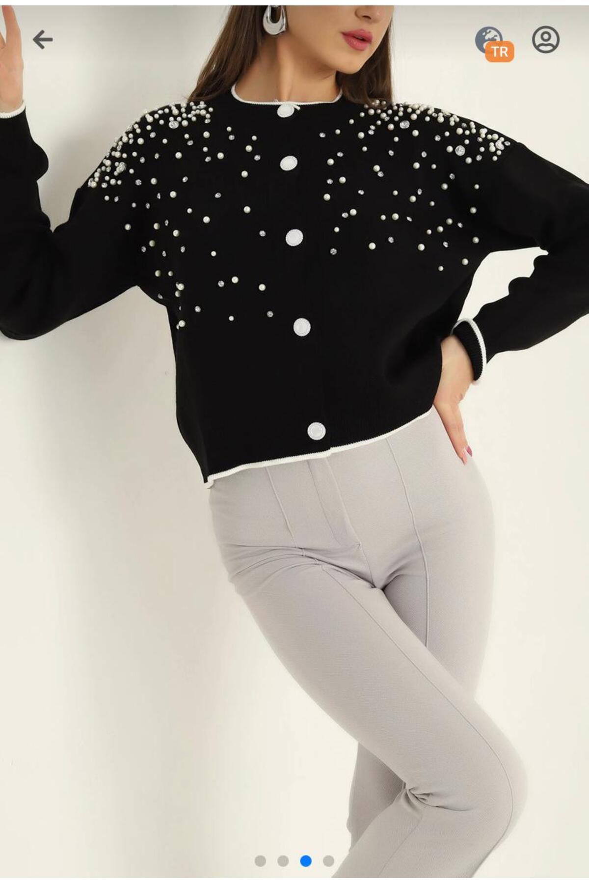 Üzeri taşlı şık düğme detaylı triko hırka Üzeri taşlı şık düğme detaylı triko hırka BS2959 Standart