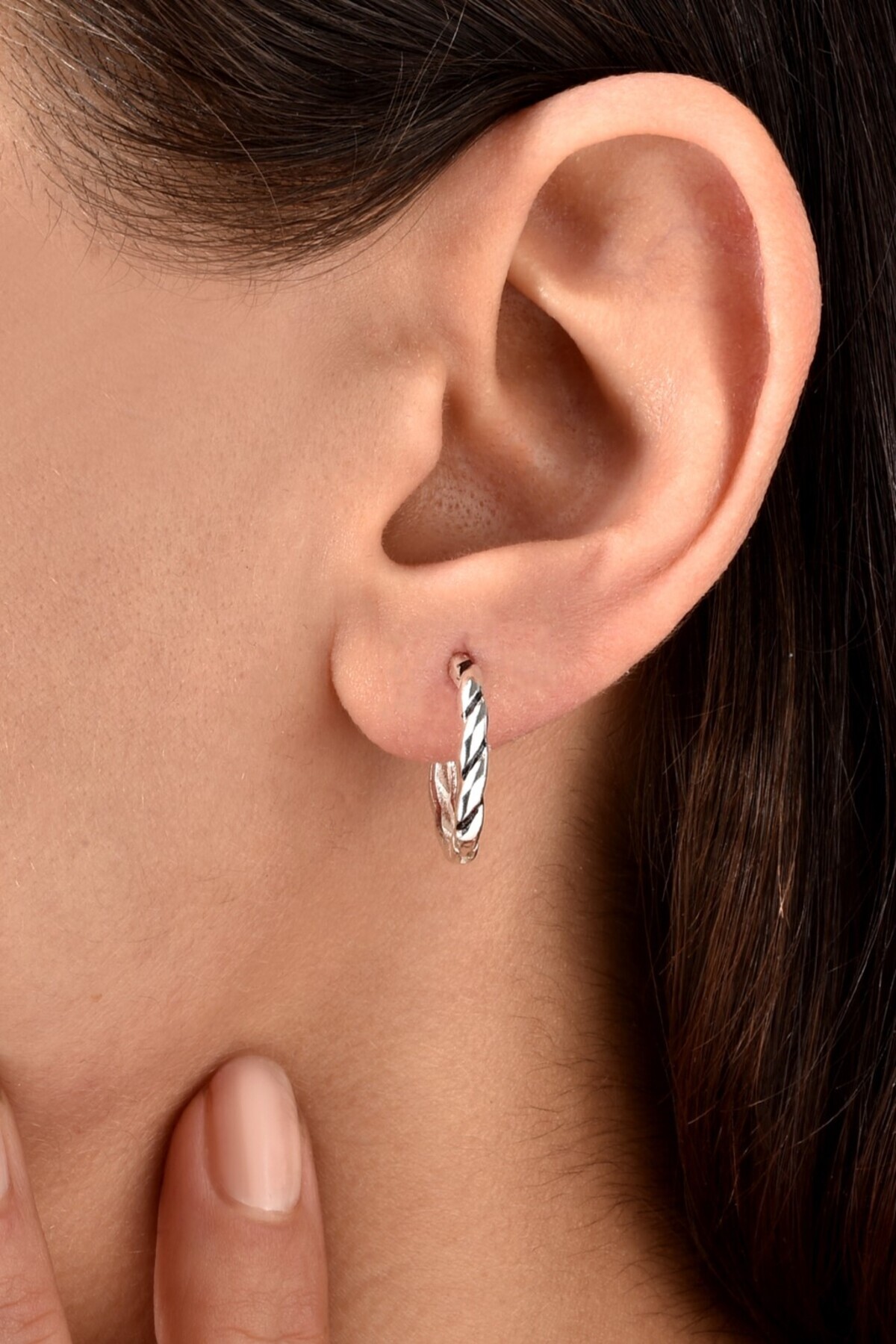 Gümüş 925 Ayar 17 Mm Dokulu Halka Küpe Gümüş 925 Ayar 17 Mm Dokulu Halka Küpe JLX-KPR394 تک سایز