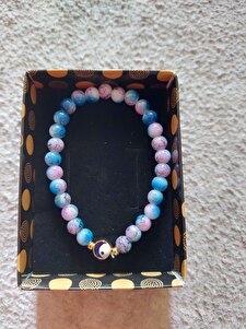 Mavi pembe karışık renk boncuk bileklik Mavi pembe karışık renk boncuk bileklik C&T00063-00063 0