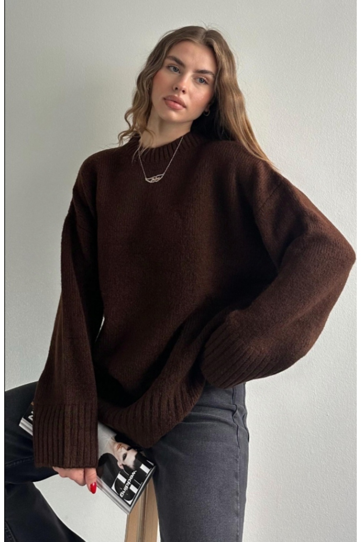 Kadın Bisiklet Yaka Oversize Kahve Triko Kazak Kadın Bisiklet Yaka Oversize Kahve Triko Kazak 2217 Standart
