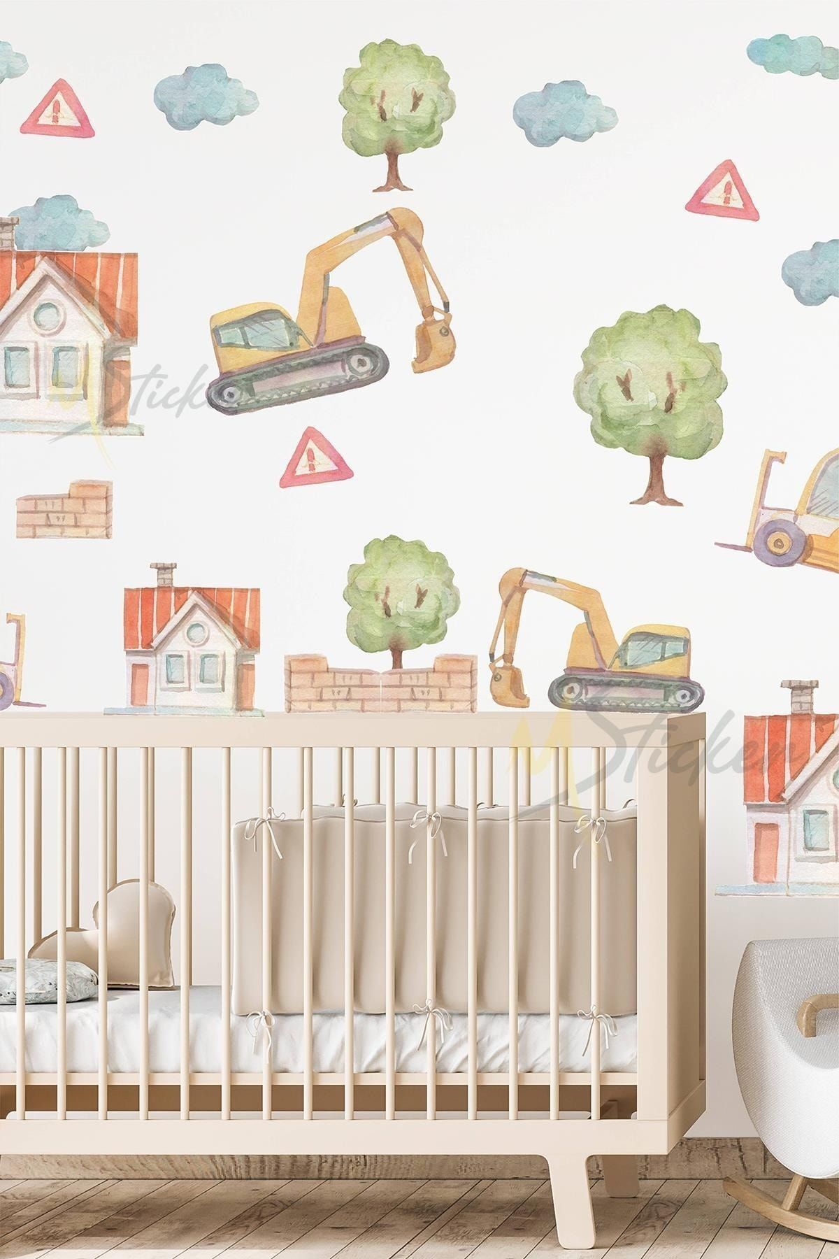 İş Makinaları Araçlar Arabalar Kepçe Kamyon Vinç Beton Mikseri Çocuk Odası Duvar Sticker Seti İş Makinaları Araçlar Arabalar Kepçe Kamyon Vinç Beton Mikseri Çocuk Odası Duvar Sticker Seti WEC00335 84 x 50