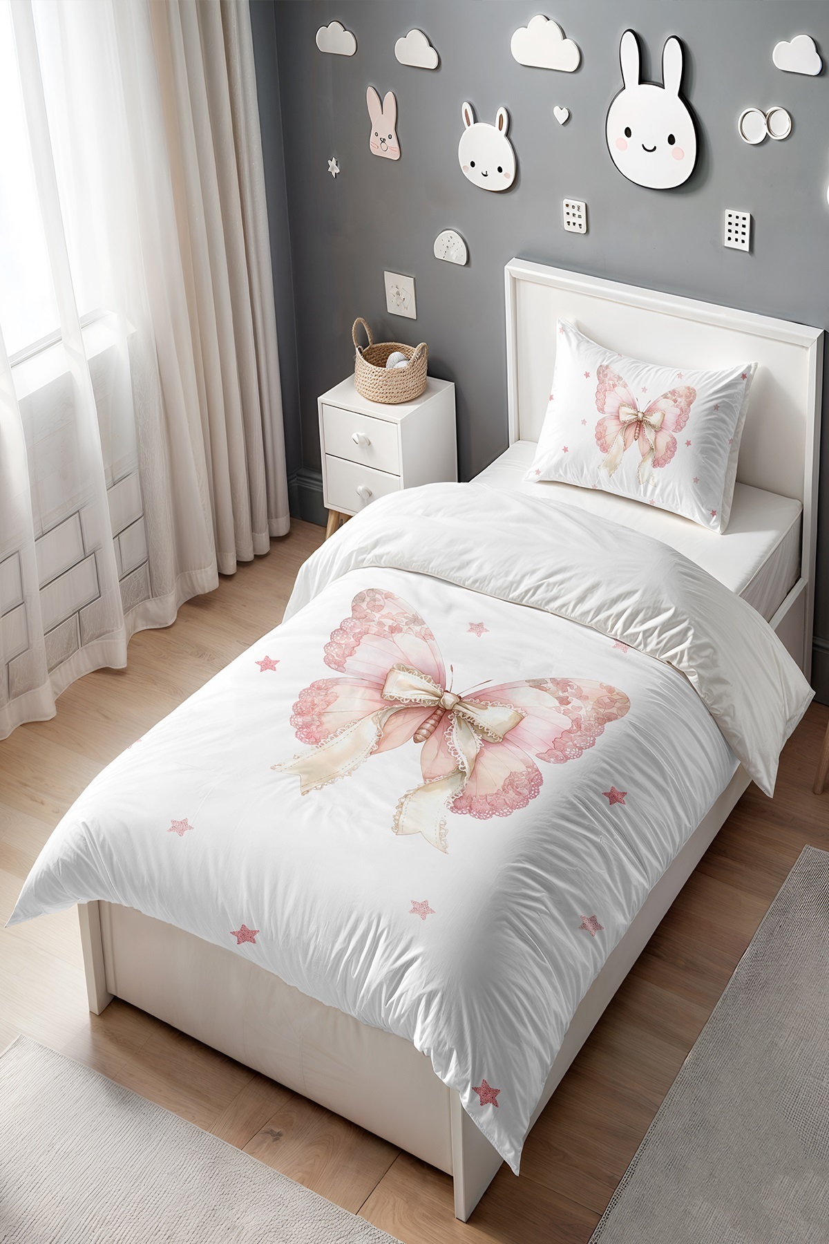 Yıldızlı Fiyonk Detaylı Kelebek Desenli Tek Kişilik Bebek Çocuk Nevresim Seti Yıldızlı Fiyonk Detaylı Kelebek Desenli Tek Kişilik Bebek Çocuk Nevresim Seti evnev00912 تک سایز