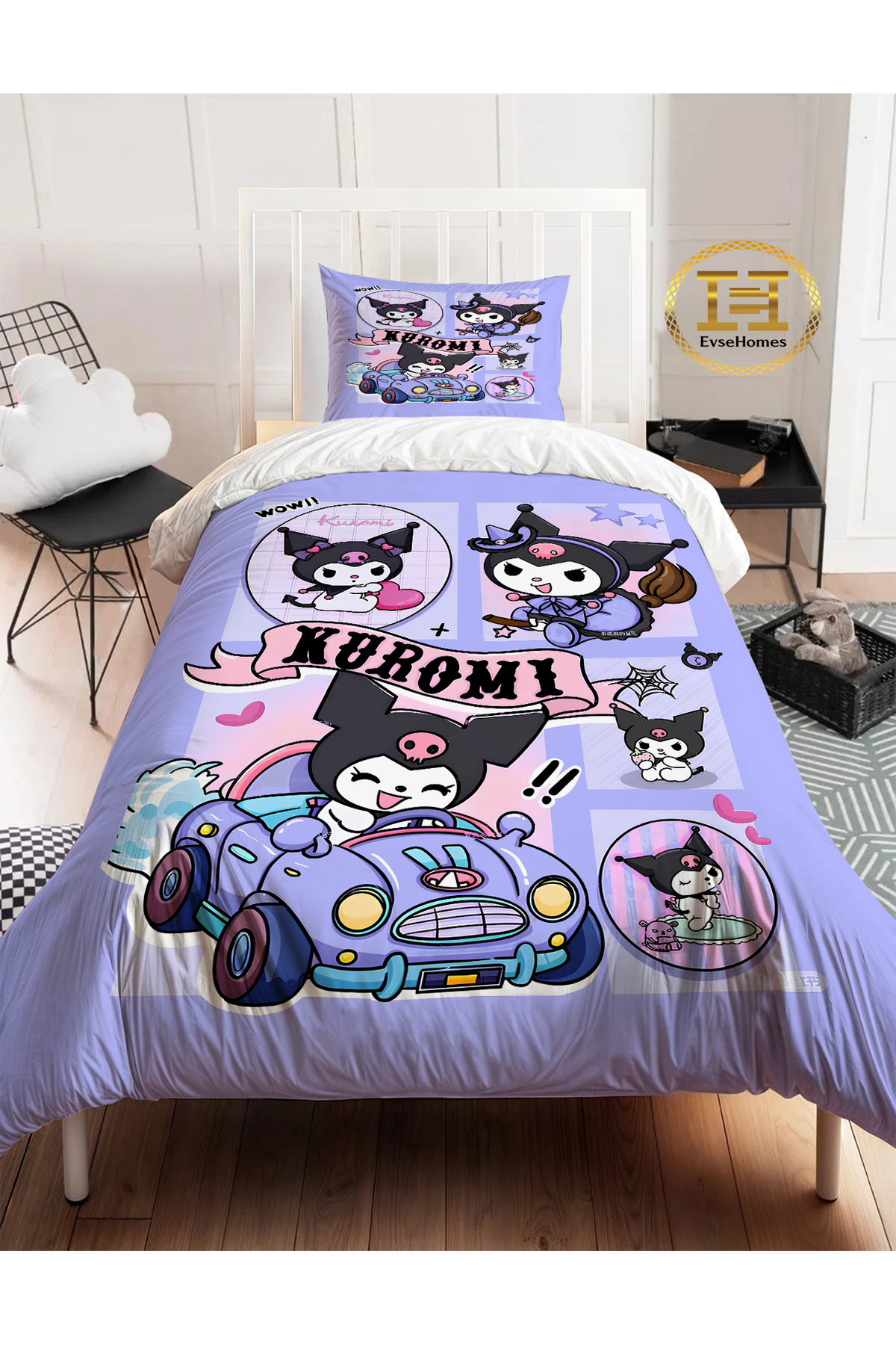 Mor Kuromi Arabası Desenli Tek Kişilik Bebek Çocuk Nevresim Seti Mor Kuromi Arabası Desenli Tek Kişilik Bebek Çocuk Nevresim Seti evnev00835 تک سایز