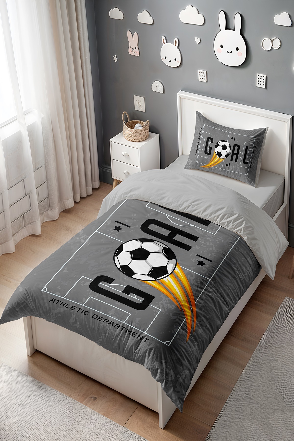 Gri Stadyum Goal Yazılı Desenli Tek Kişilik Bebek Çocuk Nevresim Seti Gri Stadyum Goal Yazılı Desenli Tek Kişilik Bebek Çocuk Nevresim Seti evnev00860 تک سایز