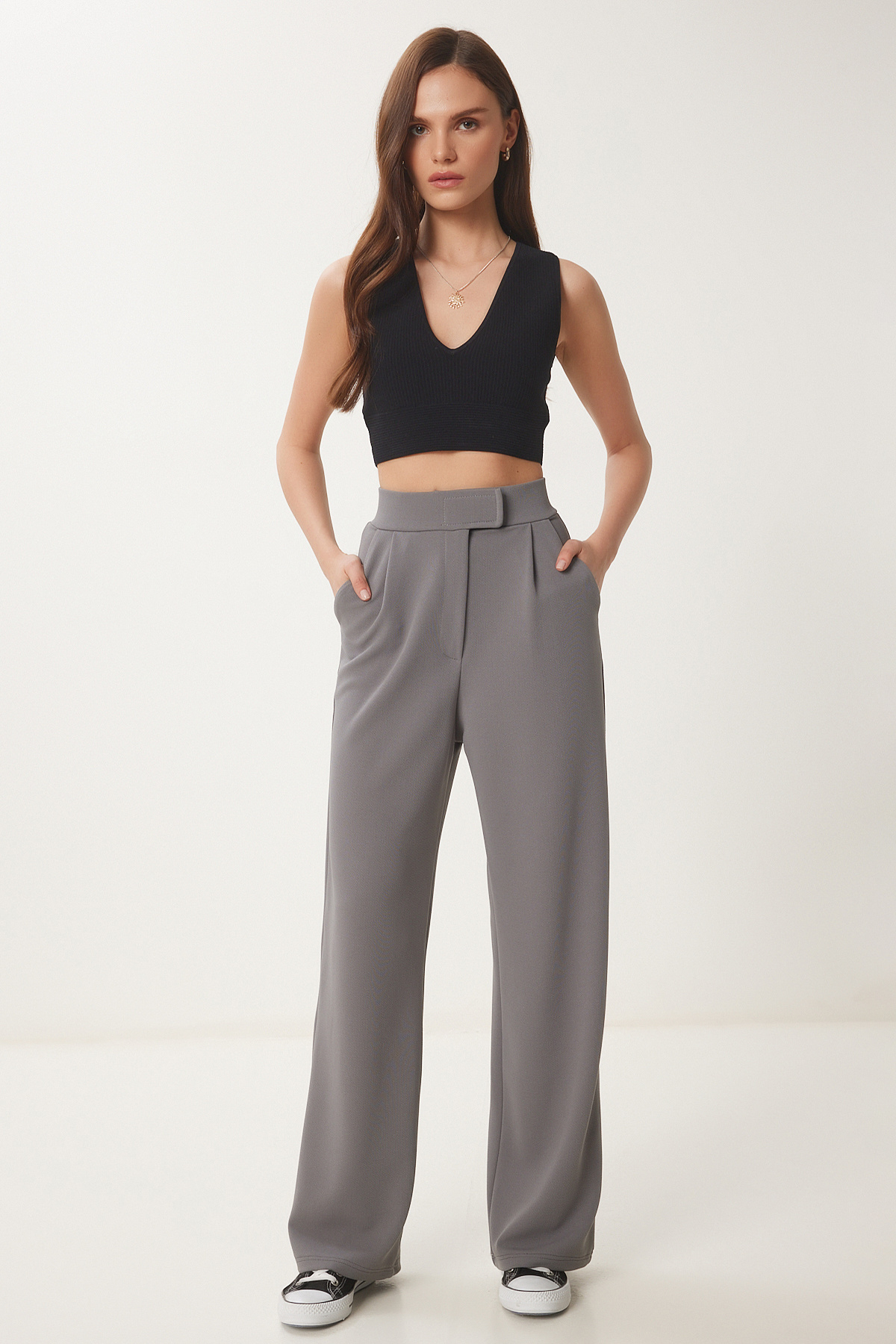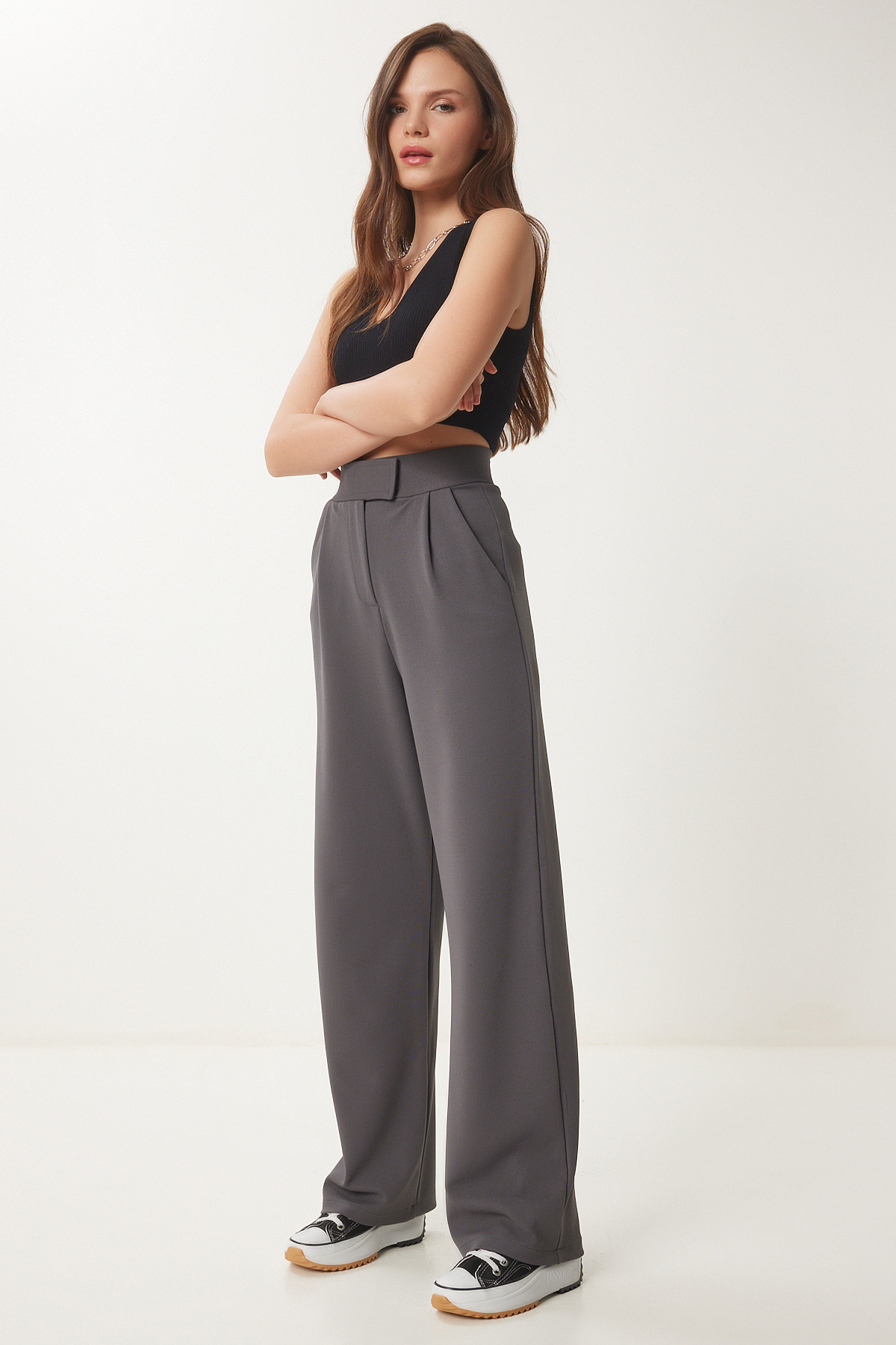 Beli Cırtlı Rahat Palazzo Pantolon HAKİ LRV0003 Beli Cırtlı Rahat Palazzo Pantolon HAKİ LRV0003 40