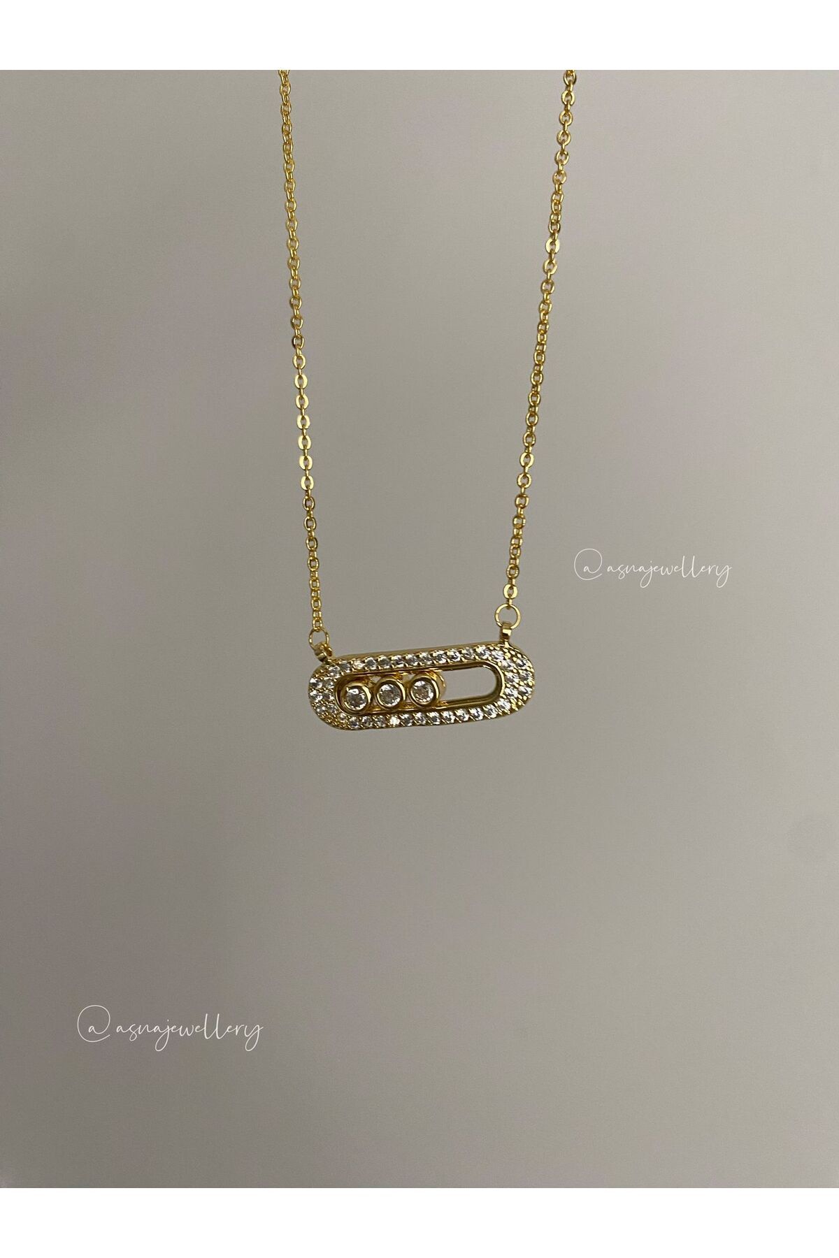 Messika Zirkon Taşlı Çengel Kolye Messika Zirkon Taşlı Çengel Kolye ASNA-KL35 47 cm