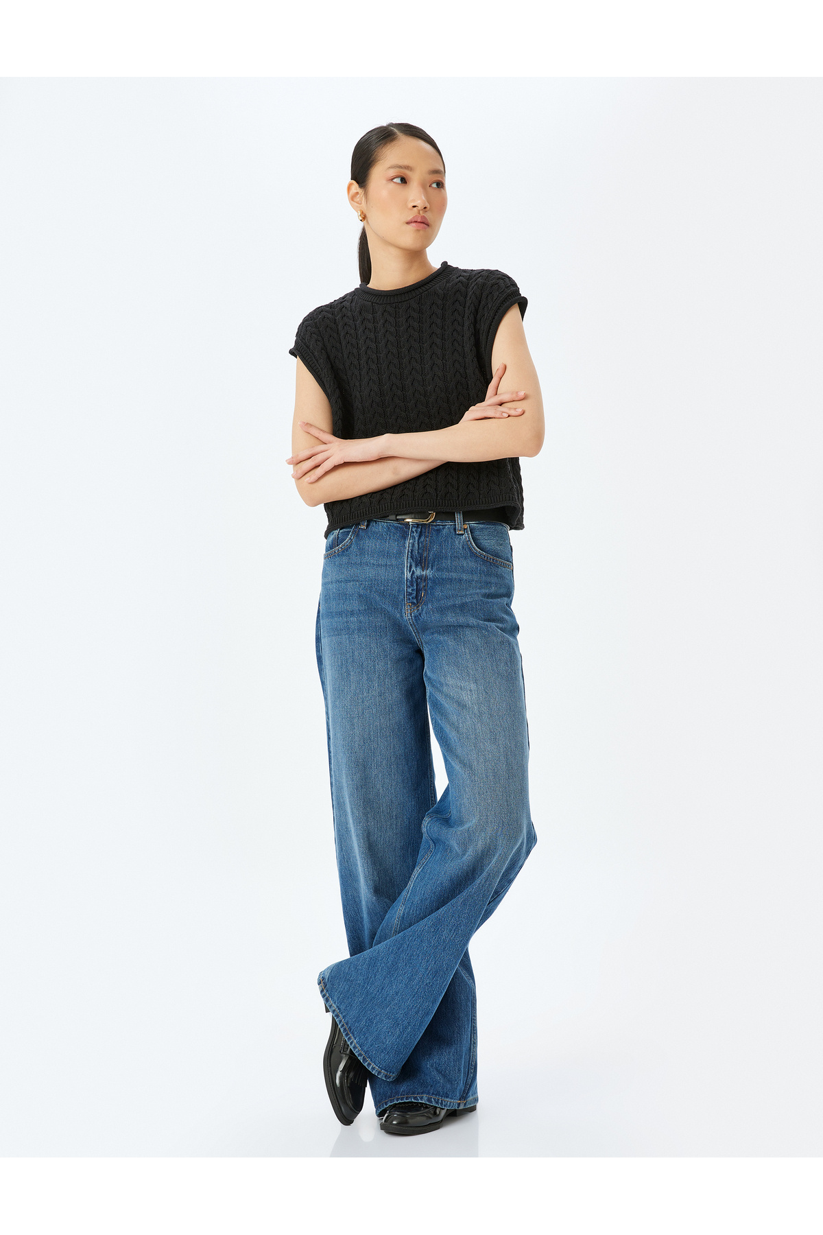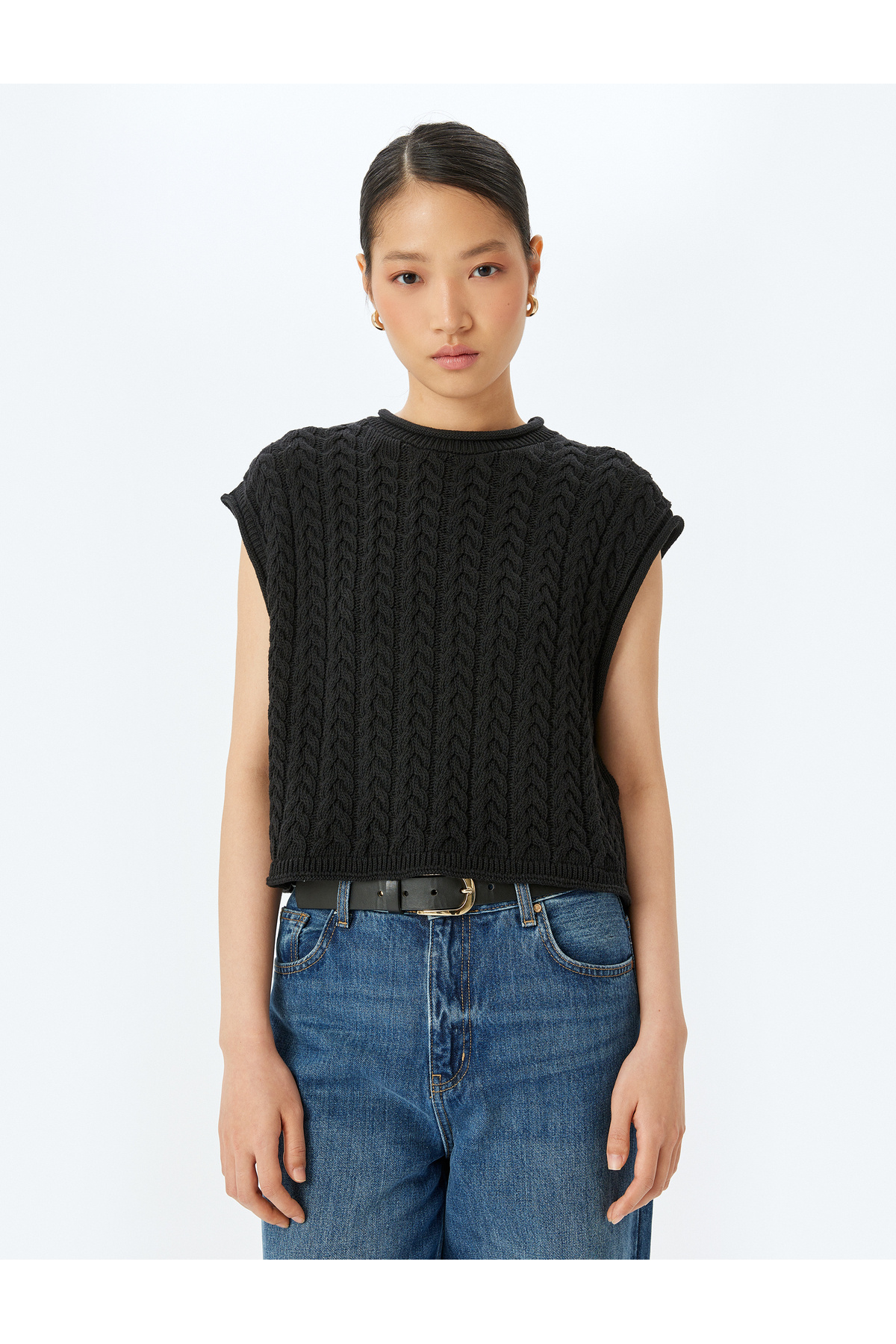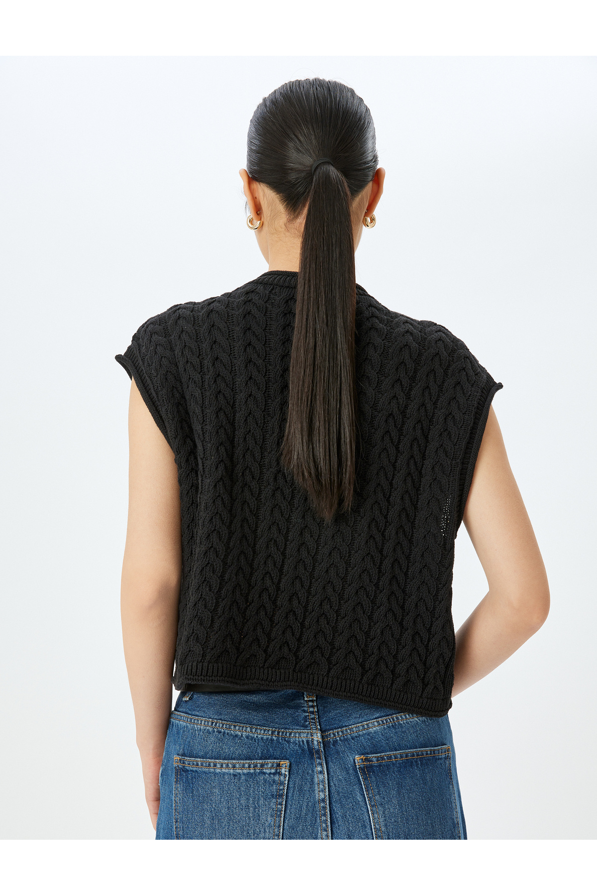 Kolsuz Yuvarlak Yaka Saç Örgü Süveter Kolsuz Yuvarlak Yaka Saç Örgü Süveter 5WAK20075HT XL