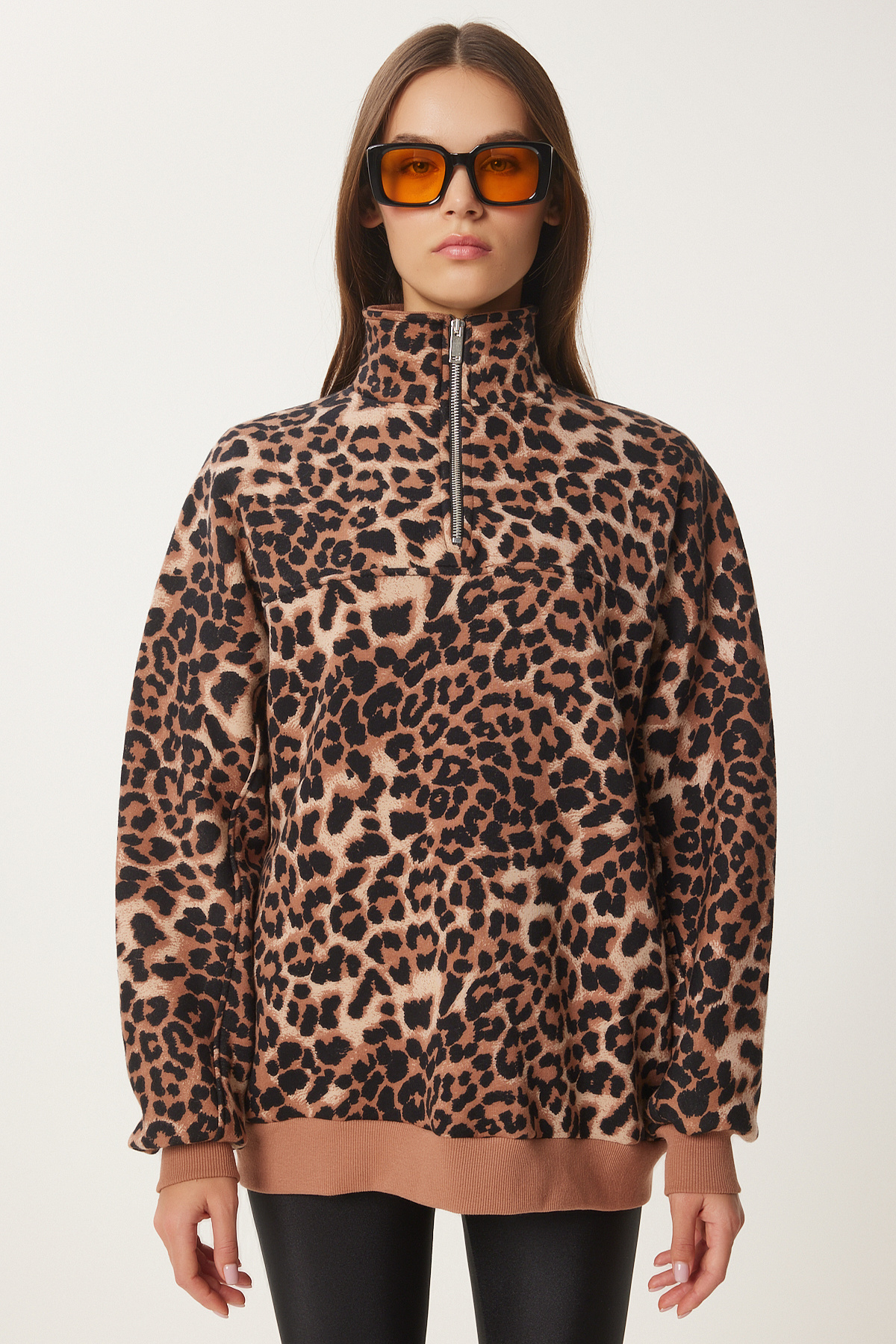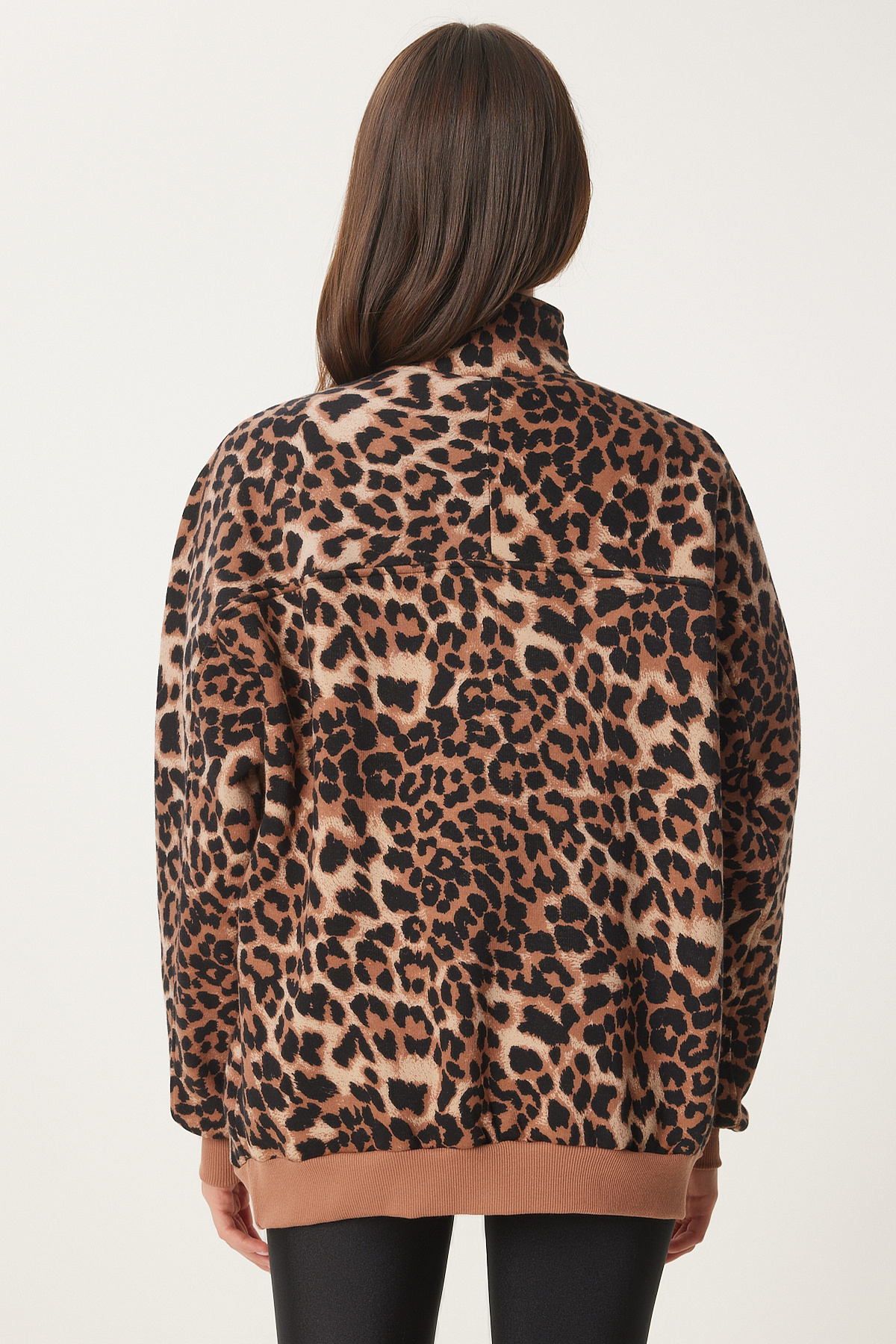 Leopar Desenli Dik Yaka Şardonlu Sweatshirt BİSKÜVİ SİYAH LDP0025 Leopar Desenli Dik Yaka Şardonlu Sweatshirt BİSKÜVİ SİYAH LDP0025 40