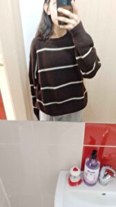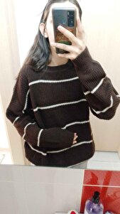 Kadın ince Çizgili Kahverengi Over Size Kazak Kadın ince Çizgili Kahverengi Over Size Kazak fmoda1200 L