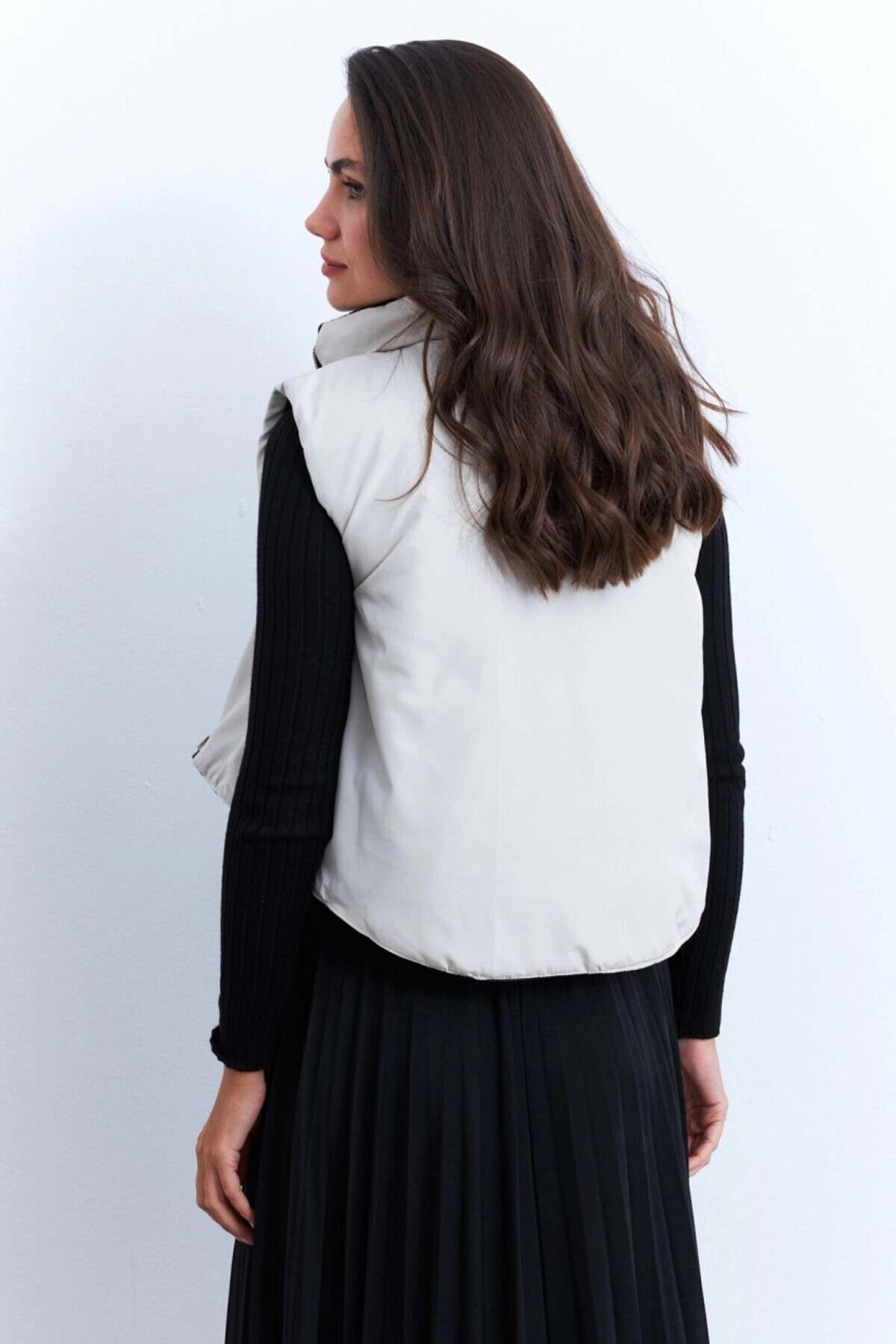 Kadın Ekru-Siyah Çift Taraflı Şişme Kısa Yelek MX12 Kadın Ekru-Siyah Çift Taraflı Şişme Kısa Yelek MX12 L