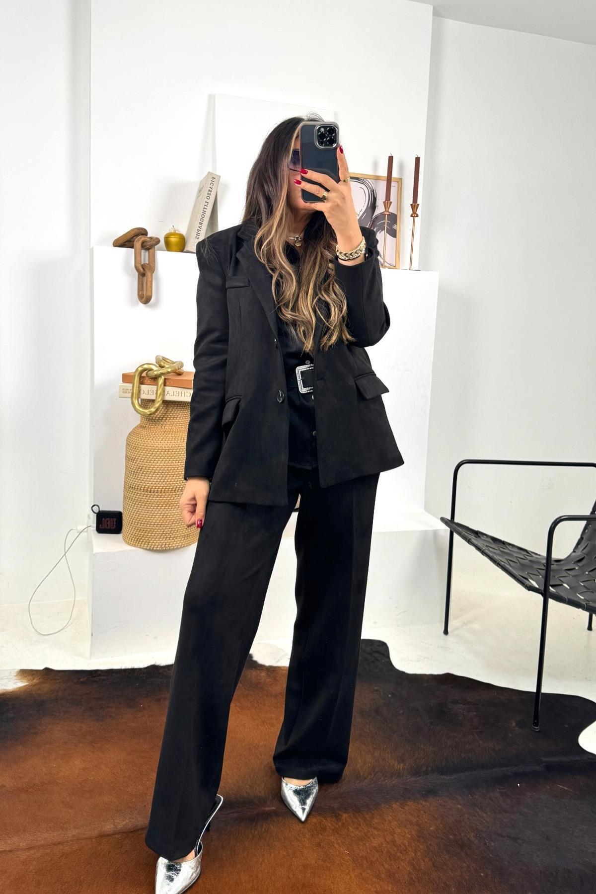 Güderi Kapaklı Cep Detay Blazer Ceket Siyah Güderi Kapaklı Cep Detay Blazer Ceket Siyah CKT0115 XL