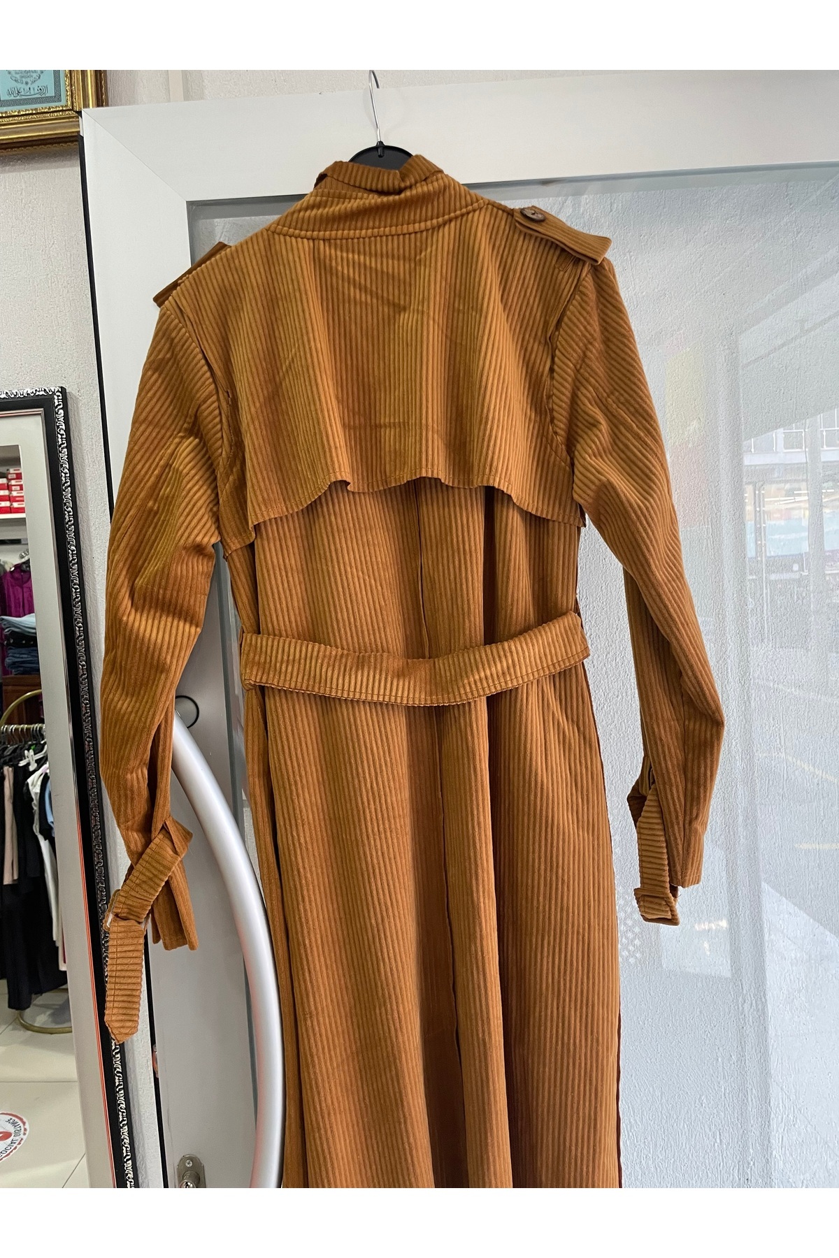 Kadın fitilli kadife uzun trenç ceket Kadın fitilli kadife uzun trenç ceket fitilliceket 42