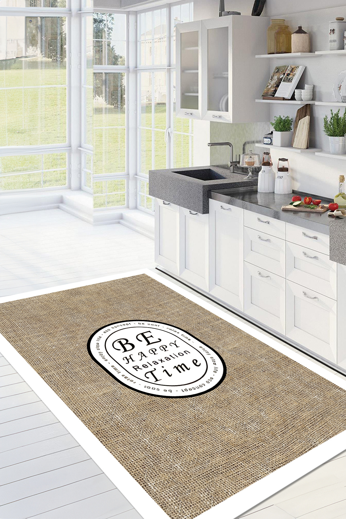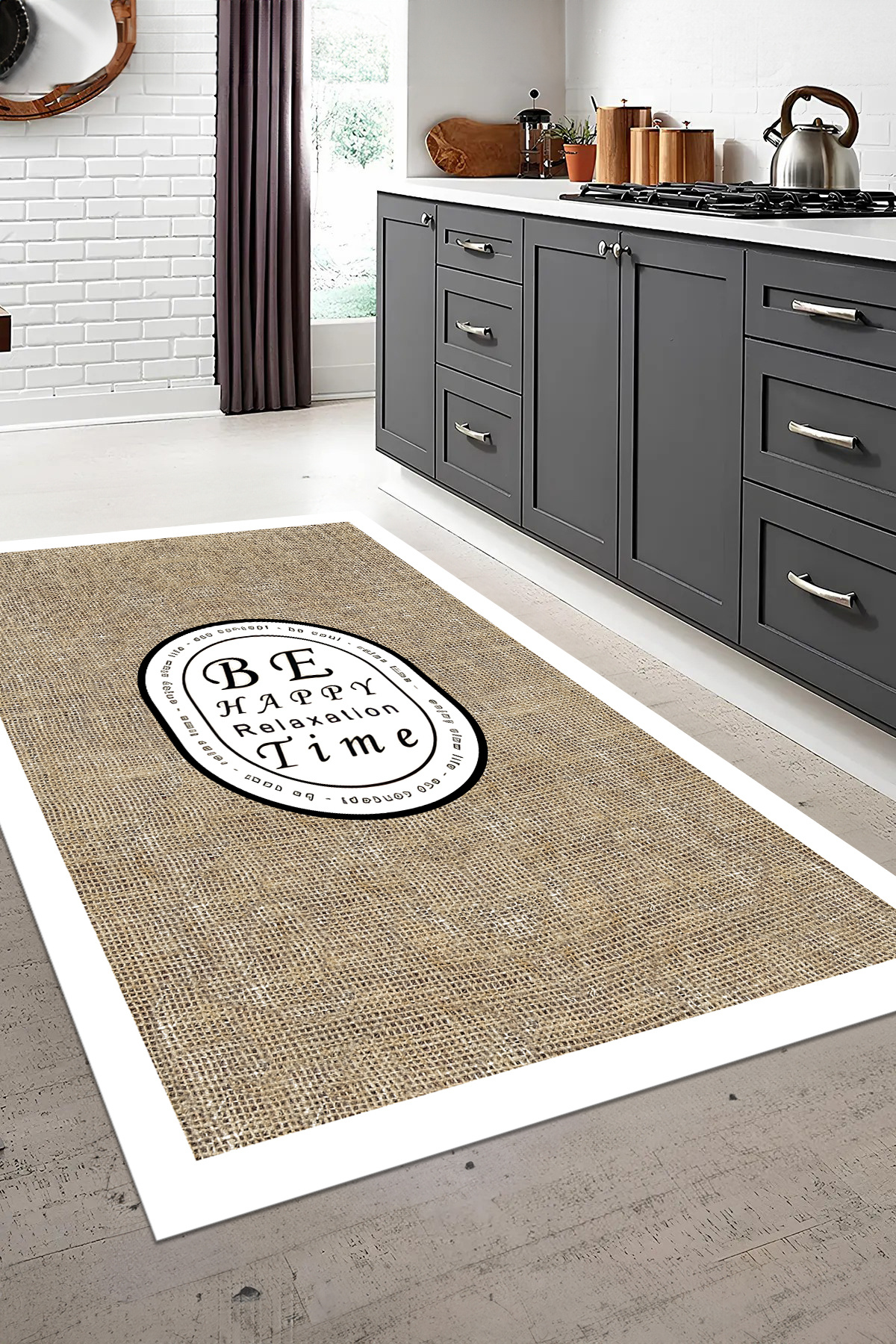 Dijital Baskılı Kaymaz Taban Yıkanabilir Sade Jüt Görünümlü Mutfak Halısı Dijital Baskılı Kaymaz Taban Yıkanabilir Sade Jüt Görünümlü Mutfak Halısı MUTFAK-123 160 x 230