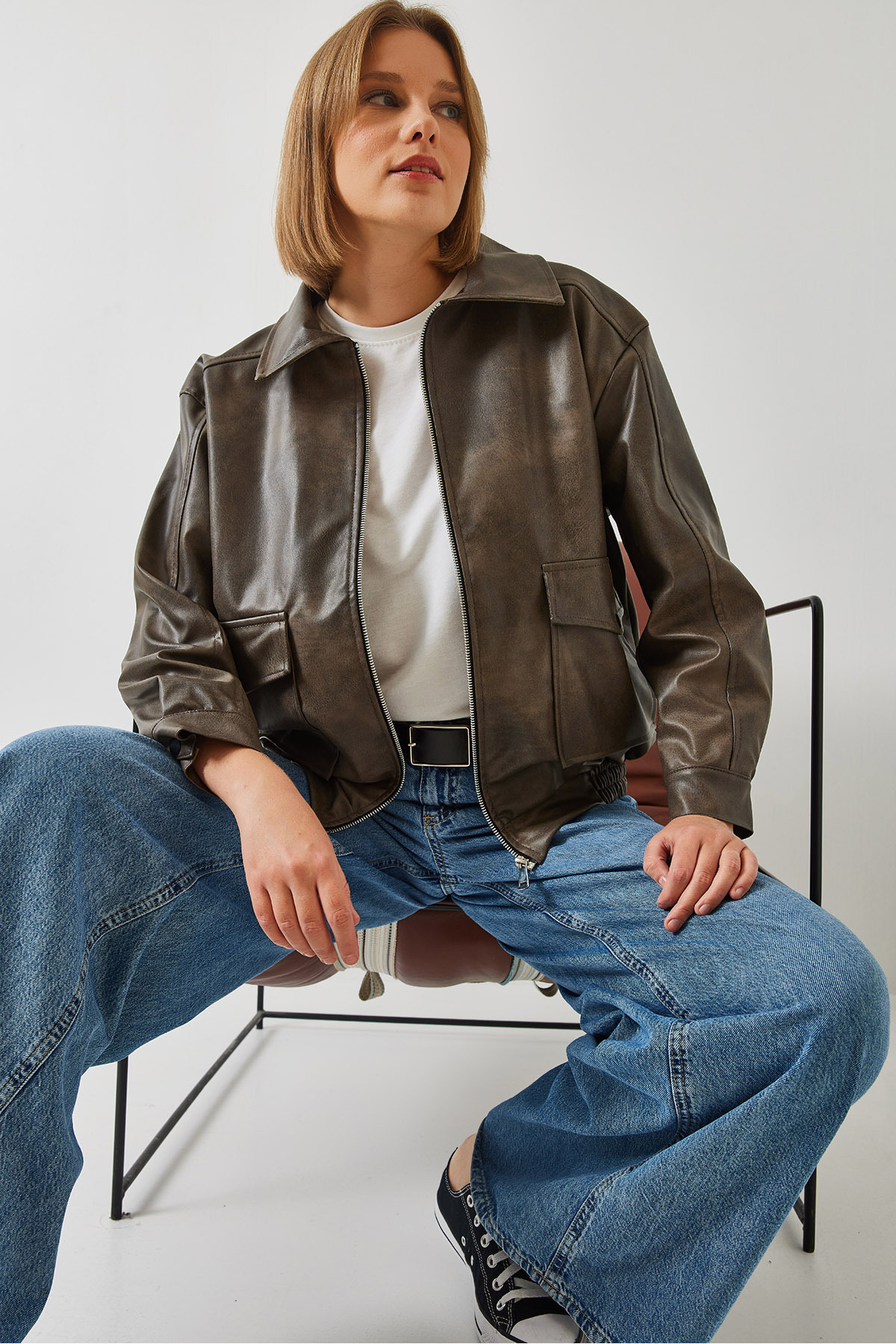 Kadın Gömlek Yaka Eskitme Deri Ceket 2609 60351264 Kadın Gömlek Yaka Eskitme Deri Ceket 2609 60351264 40