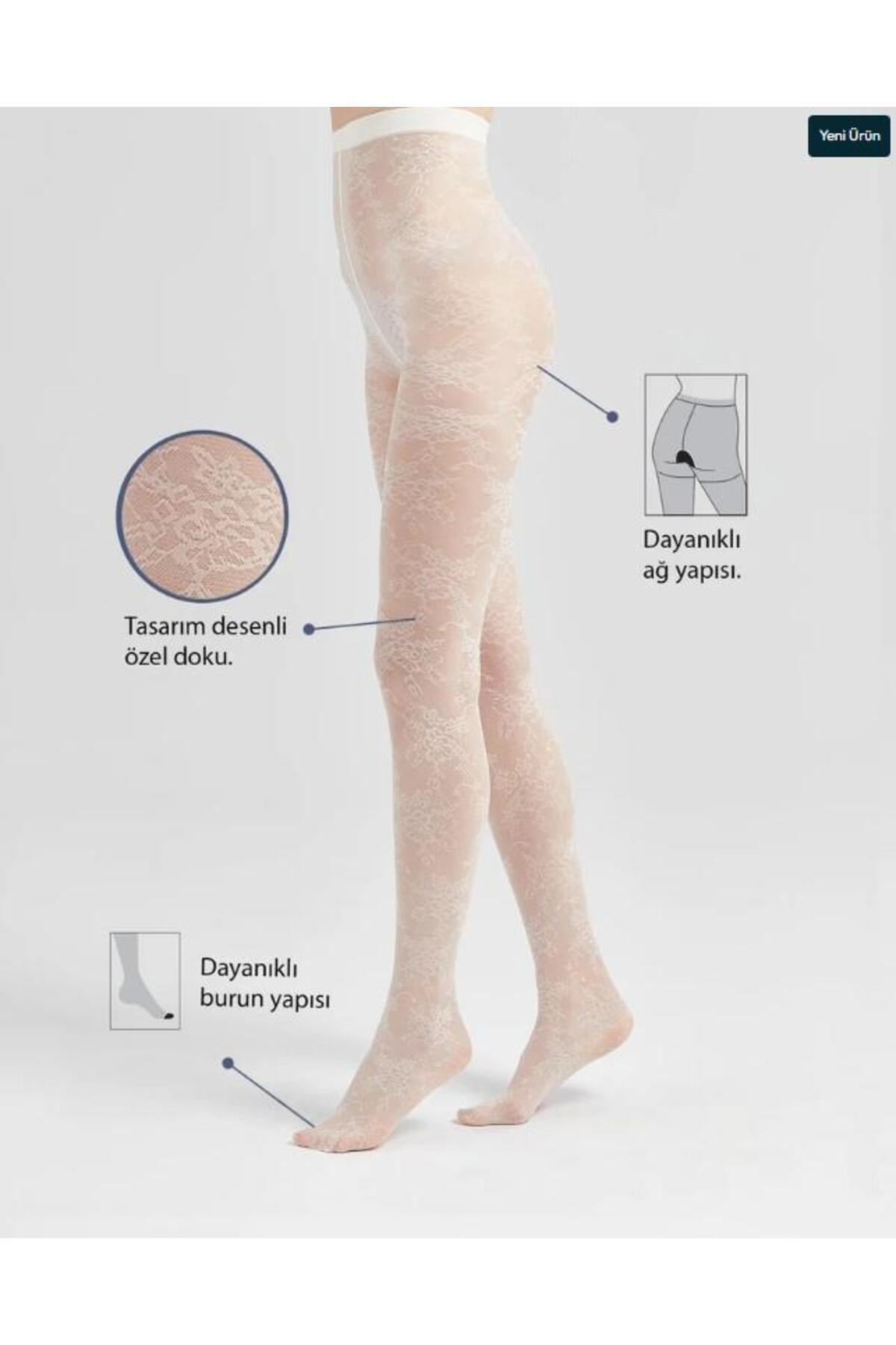 Kadın Floral Dantel Desenli Külotlu Çorap Ekru Kadın Floral Dantel Desenli Külotlu Çorap Ekru BLR-N03 XL