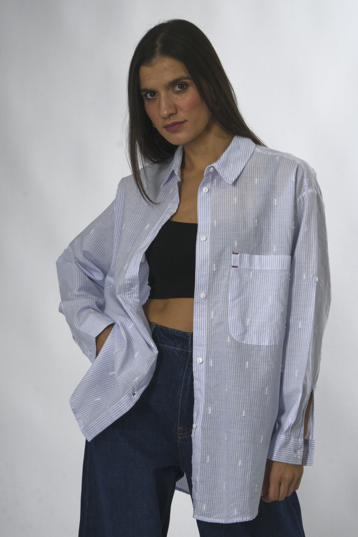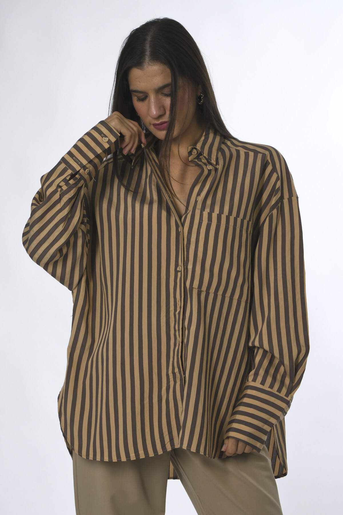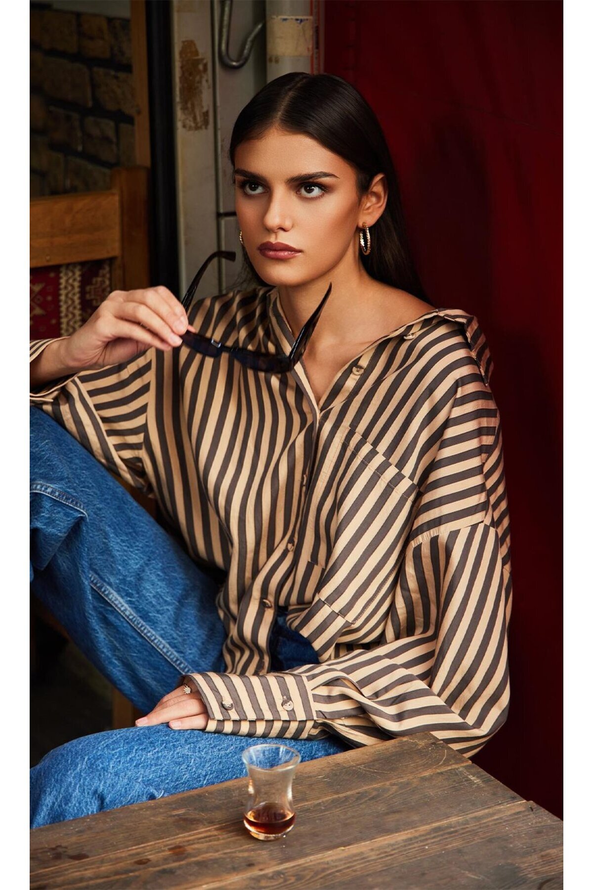 Kadın Çizgili Tek Cepli Oversize Gömlek Kadın Çizgili Tek Cepli Oversize Gömlek ABR-5555 Standart