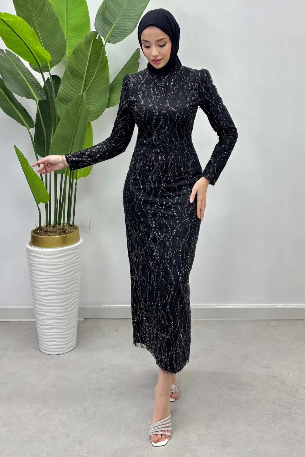 Kadın İşlemeli Tesettür Abiye - Siyah Kadın İşlemeli Tesettür Abiye - Siyah ENDRN1 46