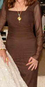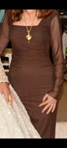 Tül Kumaş Büzgü Detaylı Kalem Elbise - TABA Tül Kumaş Büzgü Detaylı Kalem Elbise - TABA GYM-5416 46