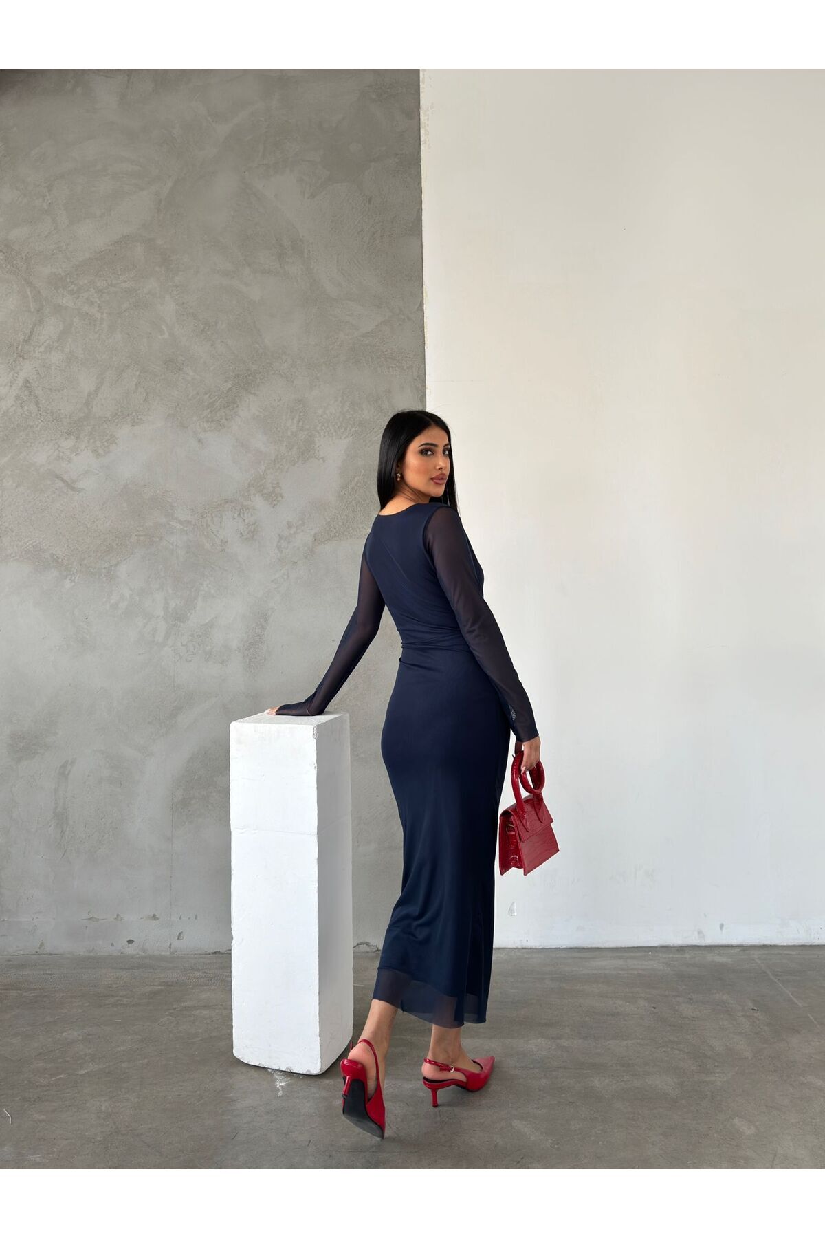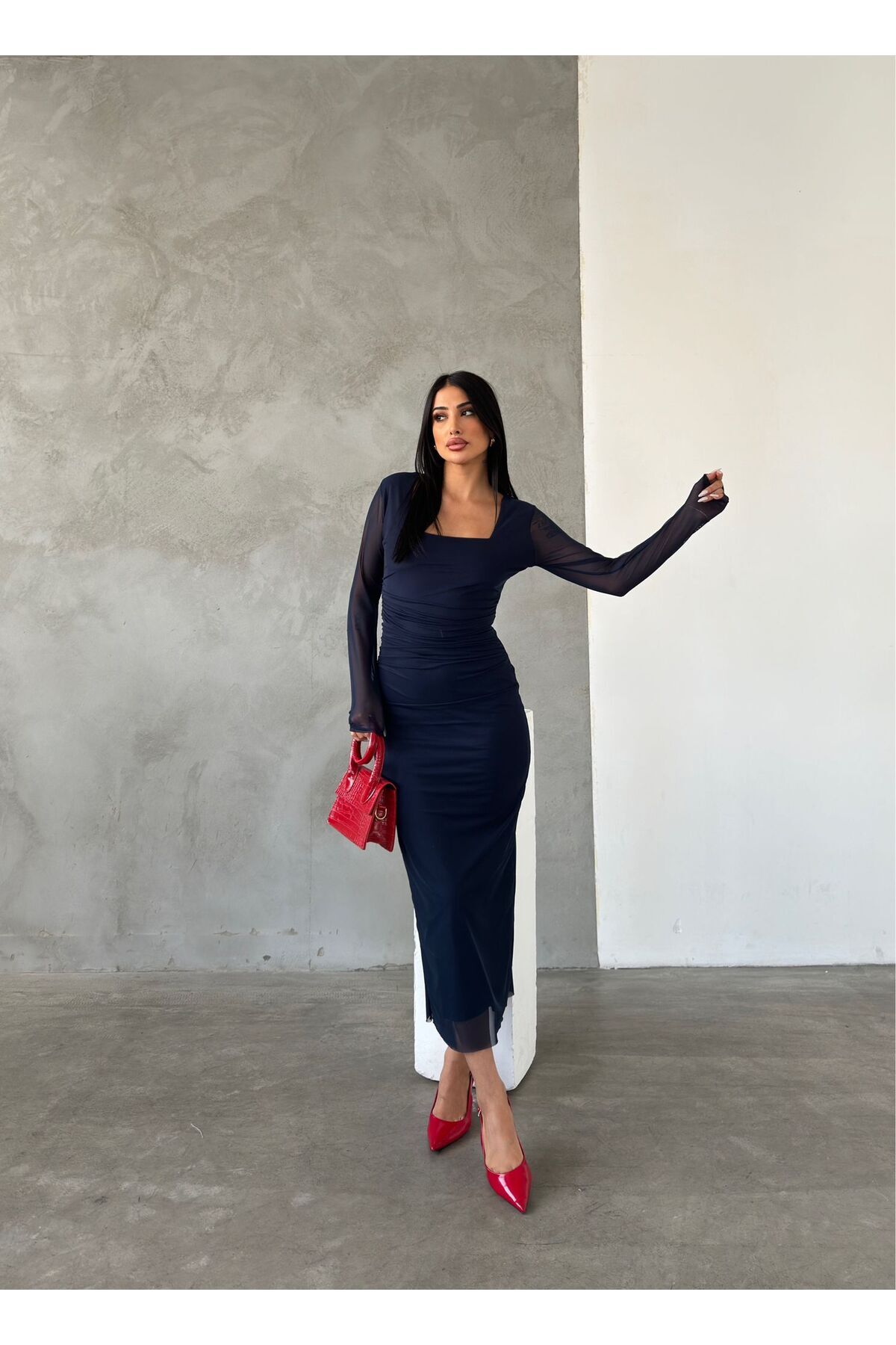 Kare Yaka Drapeli Sade Tül Elbiseler Kare Yaka Drapeli Sade Tül Elbiseler 5416 3XL
