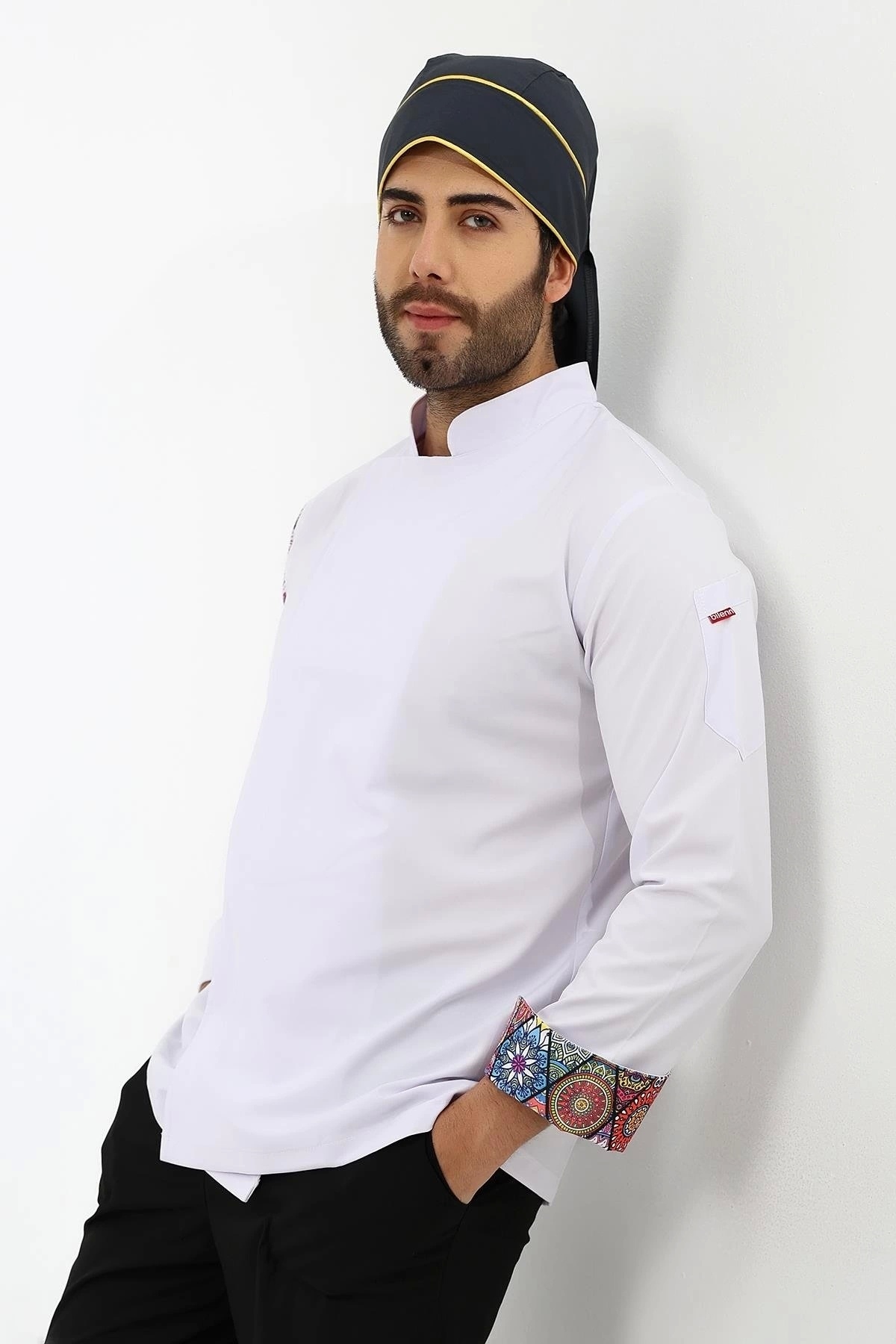 Erkek Likralı Kol Desenli Aşçı Ceket - 6401 Beyaz Çini Erkek Likralı Kol Desenli Aşçı Ceket - 6401 Beyaz Çini desenliaşçıceket 3XL