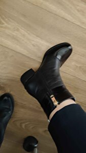 Kadın Hakiki Deri Aksesuarlı Rugan Detaylı Kısa Topuklu Bot - Siyah Kadın Hakiki Deri Aksesuarlı Rugan Detaylı Kısa Topuklu Bot - Siyah 2913 41