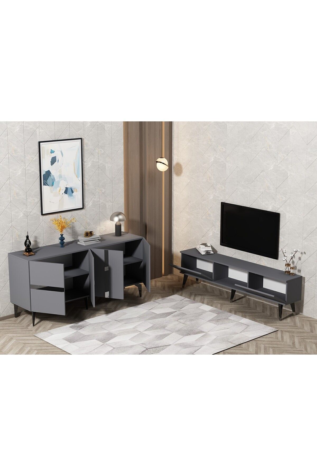 VANNİA TV SEHPASI ve KONSOL 2'li SALON TAKIMI ANTRASİT-GÜMÜŞ VANNİA TV SEHPASI ve KONSOL 2'li SALON TAKIMI ANTRASİT-GÜMÜŞ VANNİASTKM9034 تک سایز